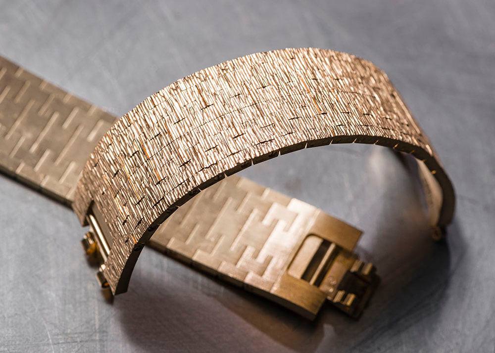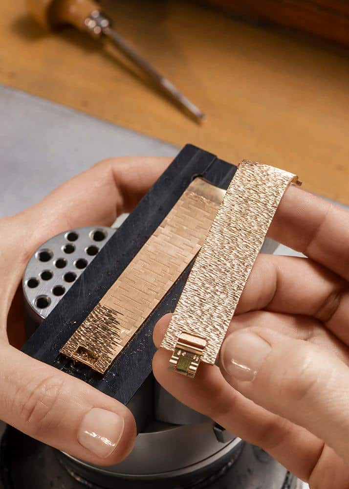 - Brazalete: de oro rosa de 18 quilates grabado con Palace Décor y con cierre de escala integrado