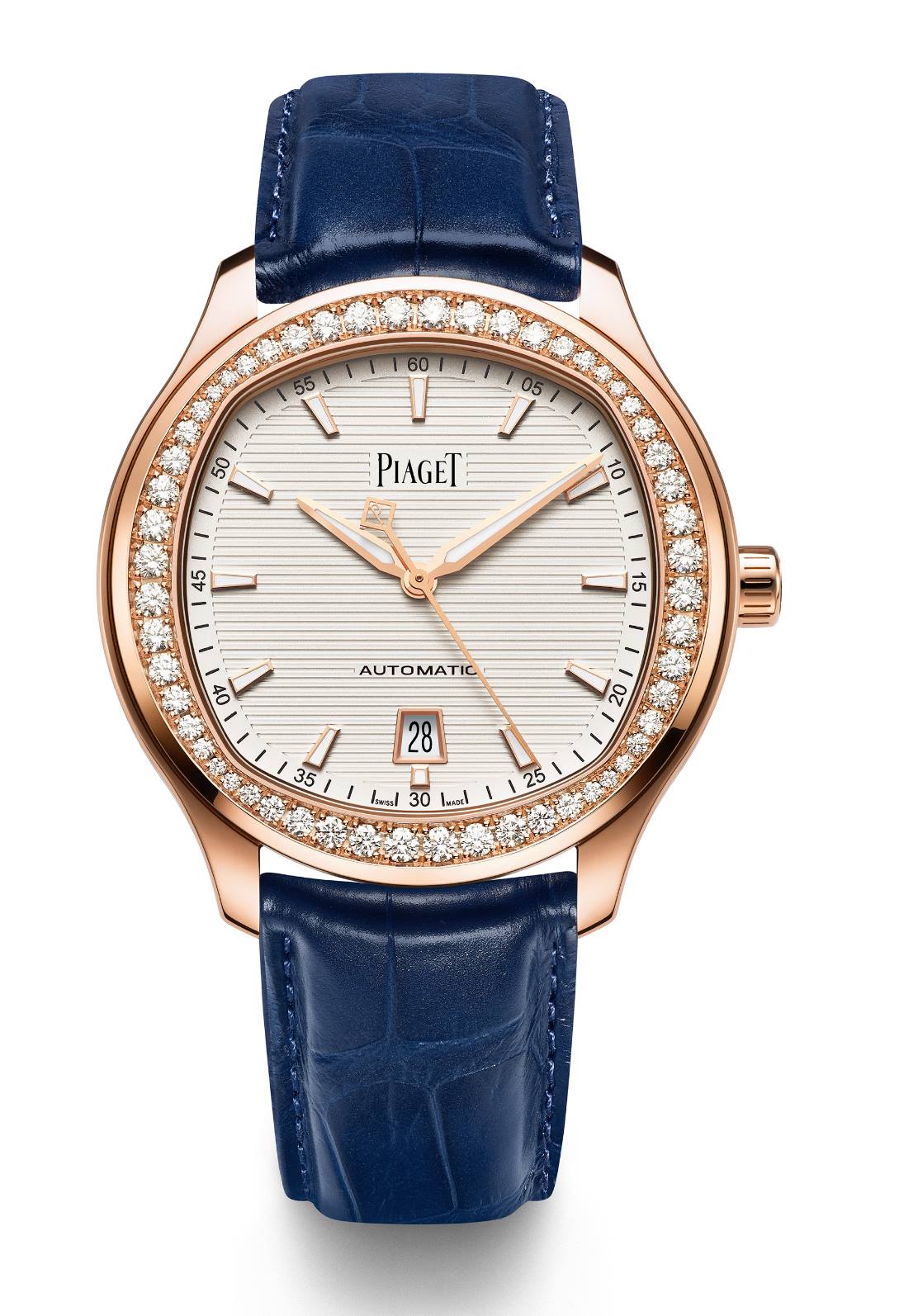 Tres referencias se preparan para conquistar a los diferentes amantes de la relojería gracias a una caja de 42 mm de diámetro desarrollada en oro rosa de 18 quilates. Dos versiones ofrecen diferente configuración de engaste de diamantes: al bisel o bisel y carátula. Mientras que uno más con calibre de cronógrafo se adiciona a la línea. Todos están dotados de una correa de piel de cocodrilo color azul, además de una adicional en color granate. Mientras que los modelos automáticos están propulsados por el calibre 1110P de Manufacture Piaget.
