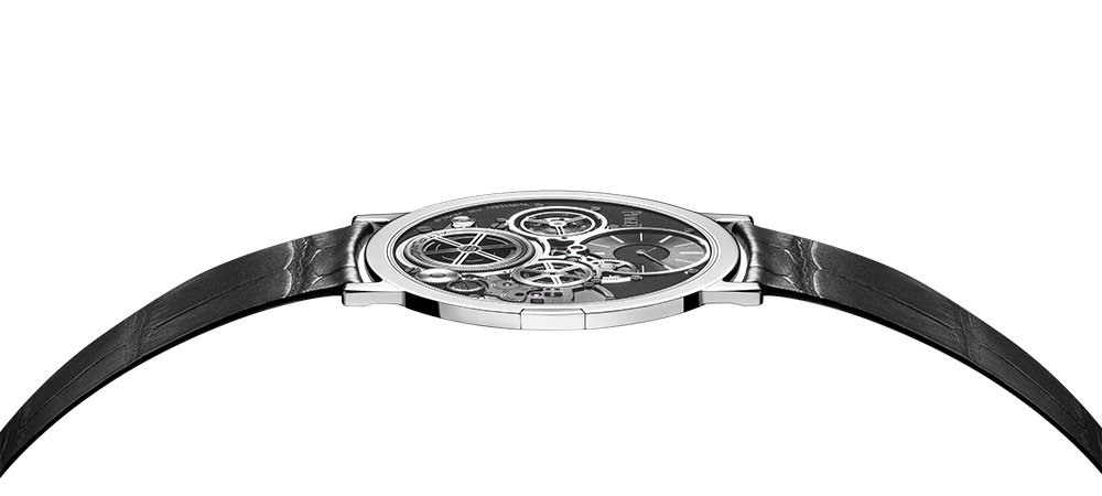 Son 4.3 mm de grosor, casi un milímetro más delgado que las marcas anteriores. Se elimina la platina para utilizar al fondo de la caja, y además se adiciona un rotor oscilante periférico para no sumar espacio en el calibre. Puentes, ruedas han sido reducidas al máximo para este hito, que se basa en el principio de utilizar 3 de los 4 componentes esenciales que conforman el reloj.