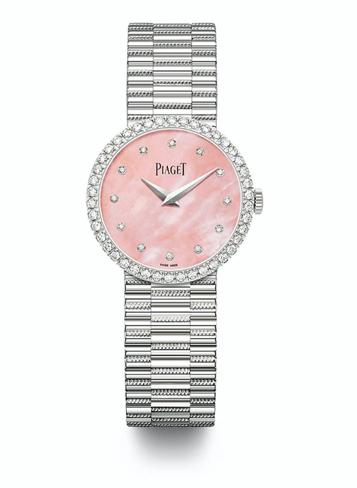 En una caja de oro blanco de 18 k engastada de 42 diamantes, la carátula en nácar rosa resaltará con los 12 índices tipo punto en los que se leerán las horas y minutos. Con un movimiento mecánico ultraplano de Manufactura Piaget 430P de cuerda manual, el reloj Tradition se abrazará al pulso a través de un brazalete en oro blanco.