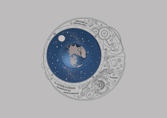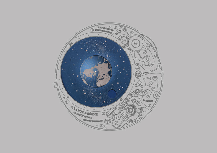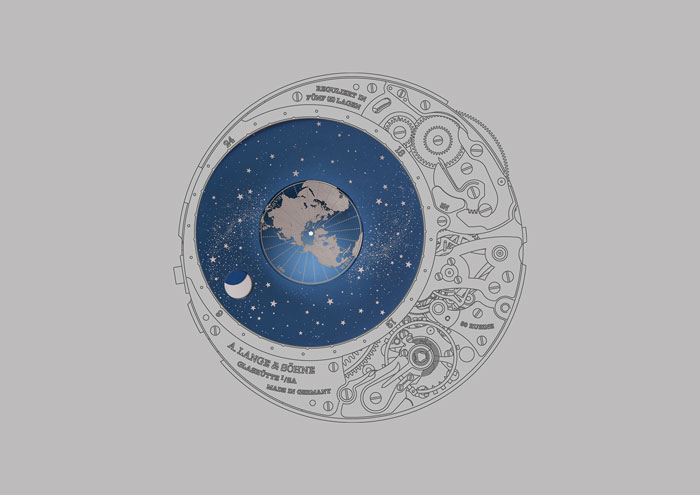 Este año tuvimos la oportunidad de conocer una propuesta –conjunta– que privilegia los fenómenos astronómicos en las carátulas y movimientos relojeros, pero que ha llegado a tal especialización que demuestra hasta el más leve cambio en una fase de Luna, discierne con respecto a los años bisiestos y a la posición de la Tierra en su movimiento de traslación en comunión con el Sol, lo que nos lleva a hablar de A. Lange & Söhne y su maestría para poderlo conseguir: Richard Lange Calendario Perpetuo “Terraluna”.