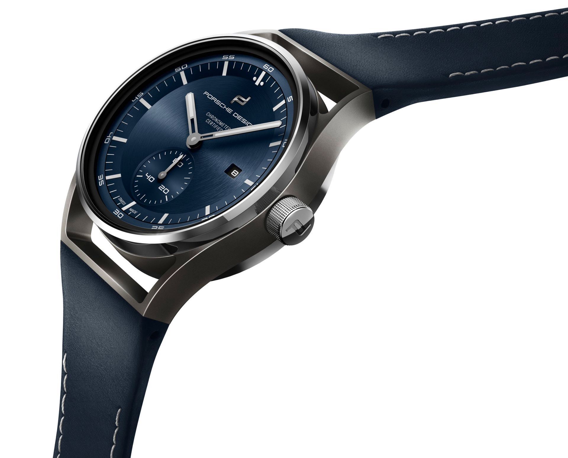 Desarrollados a partir de la caja del 1919 en titanio, lucen un acabado mate microbrillado. Porsche Design presentó –además– un nuevo calibre in-hose, el Werk 03.200 para animar el tres manecillas (horas, minutos y segundero pequeño). Motor certificado como cronómetro por el COSC. Se trata del cuarto movimiento develado por Porsche Design en el último lustro.