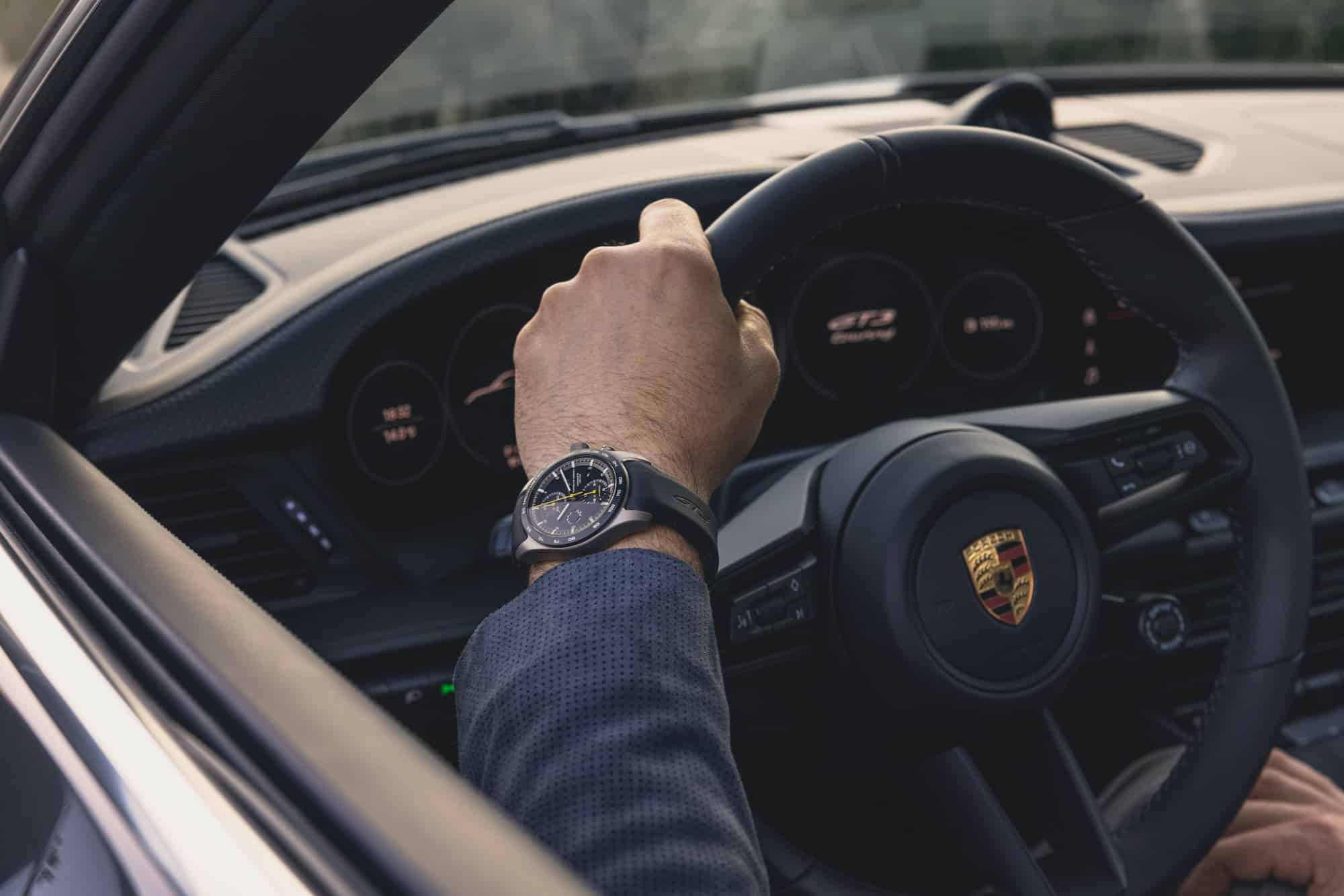 Para celebrar el lanzamiento del Porsche 911 GT3 con el automóvil Touring Package, Porsche Design ha creado un reloj a medida. Por supuesto, puede personalizar su propio reloj Porsche Design Chronograph 911 con la ayuda del configurador en línea, que le permite elegir pinturas y pieles genuinas de Porsche 911, por ejemplo, así como rotores en forma de rueda para combinar con su automóvil. El Porsche Design Chronograph 911 GT3 Touring Package se ofrece exclusivamente a los propietarios del automóvil, con la opción de realizar más ajustes de personalización.