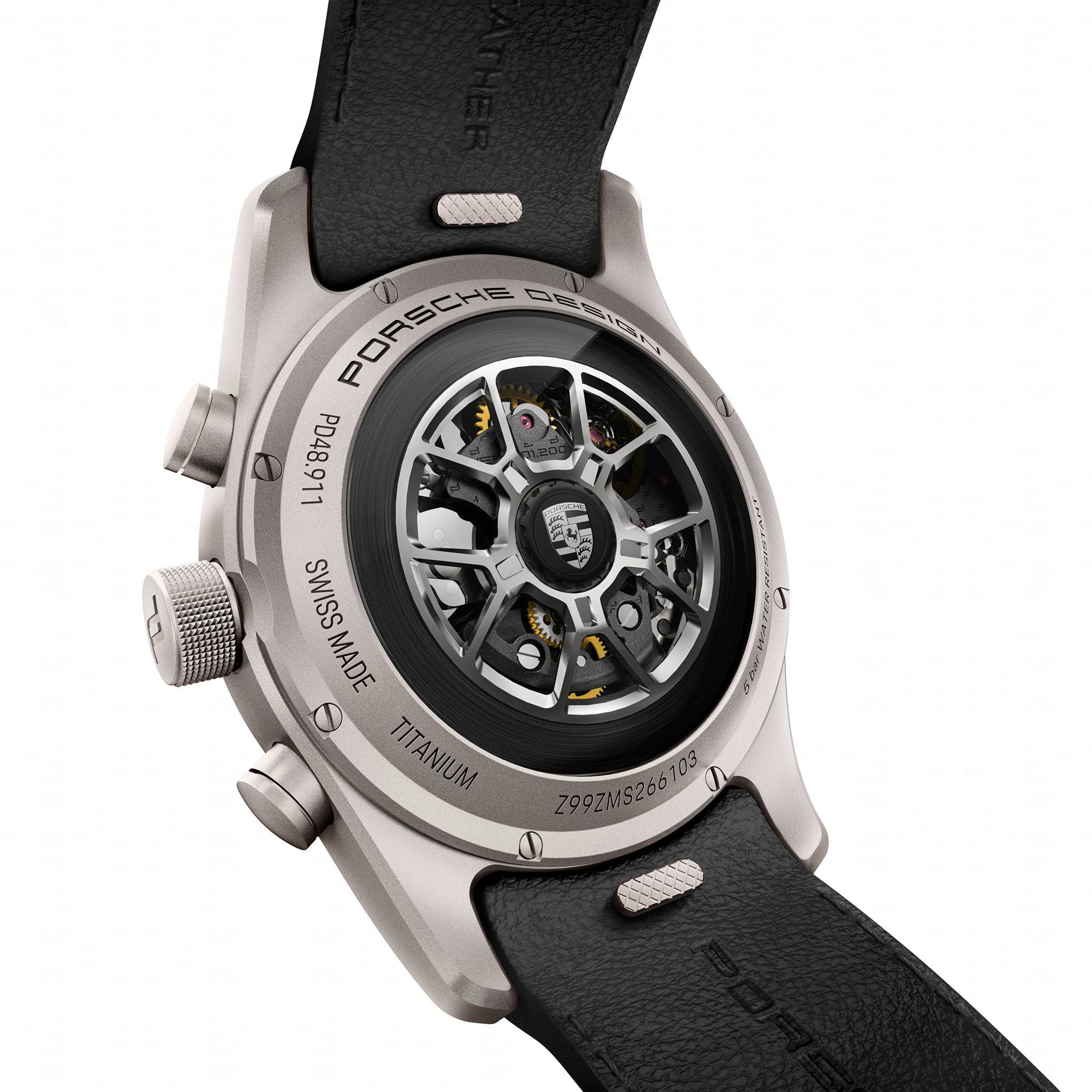 Porsche Design monta el WERK 01.200 al interior de este nuevo bólido relojero, es el mismo que en otros relojes Porsche Design Chronograph 911, con la excepción del rotor, que es visible a través del fondo de caja de cristal de zafiro. El movimiento del cronógrafo flyback se basa en el cronógrafo automático 7750, pero está modificado según las especificaciones de Porsche Design, tanto técnica como estéticamente. Los clientes del automóvil pueden elegir entre seis colores de rotor diferentes para combinar con las ruedas de su automóvil. Se pueden seleccionar más opciones de personalización a través del configurador en línea (hasta 1.5 millones de combinaciones diferentes).