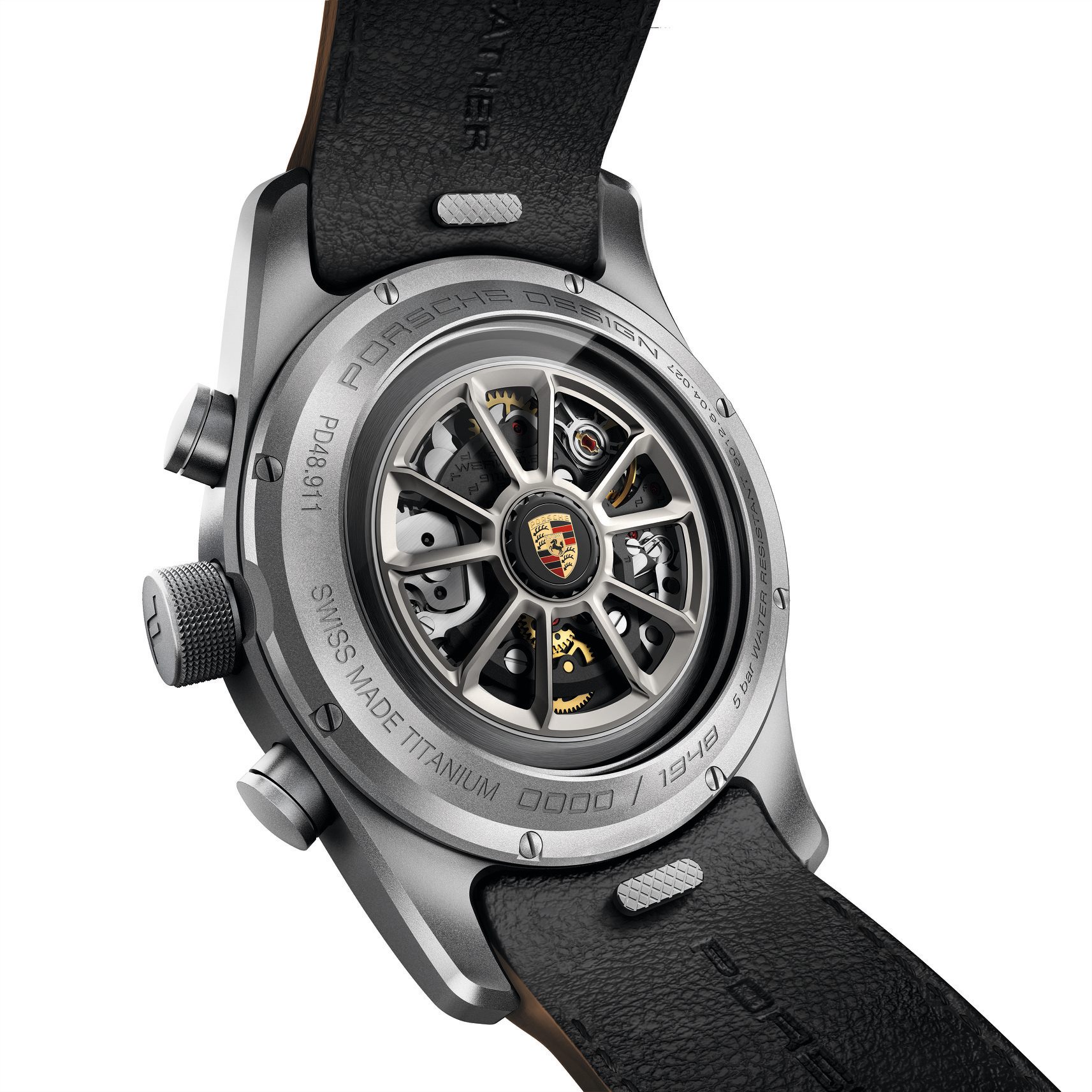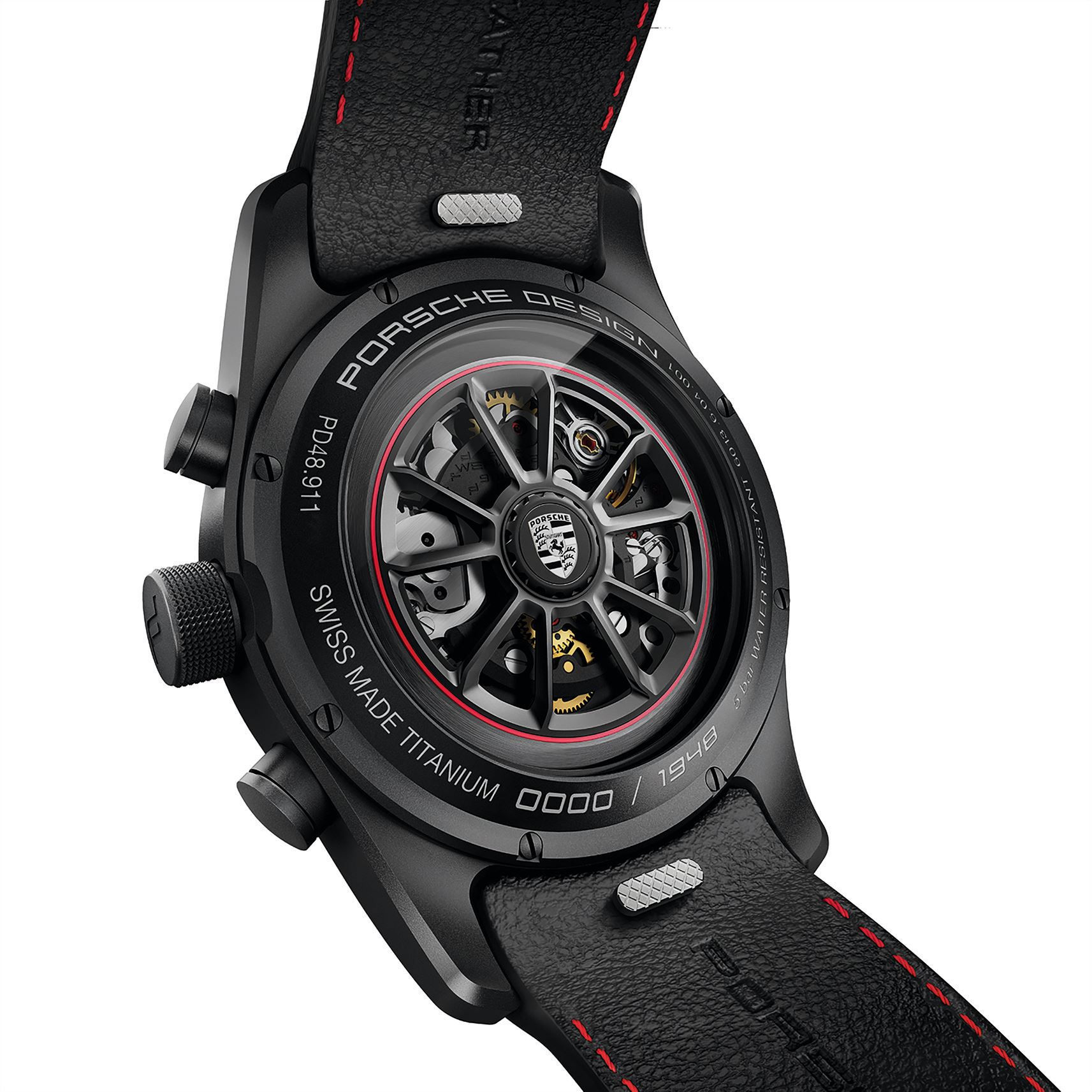Hecha en titanio puro y con extensión de 42 mm de diámetro, es hermética hasta los 50 metros de profundidad o su equivalente en bares de presión. Porsche Design utiliza el titanio desde 1972 cuando presentó su primer reloj, las razones están ligadas a su conexión automotriz y a las bondades de este metal por encima del acero. Es hipoalergénico, ofrece mayor resistencia a la abrasión y es más ligero.