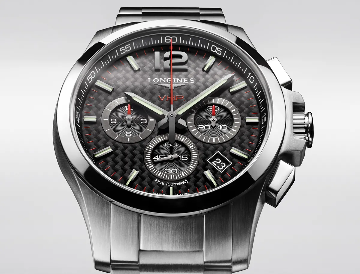 Recuperando los hitos de la relojería de Longines, el Conquest V.H.P., está dotado de un movimiento desarrollado en exclusiva por ETA para Longines, un movimiento de altísima precisión para un reloj analógico, cuyo rate de precisión es de (± 5 s/año), es decir: un reloj mecánico tradicional de precisión certificada por el COSC tiene una desviación aceptada de -4+6 segundos diarios. Adicionalmente es capaz de reiniciar las agujas posterior a la exposición a un campo magnético o después de un choque, todo gracias a un sistema de detección de posición de rodaje (DPR). Estas ventajas que le confieren una precisión extrema y básicamente inalterable, además se añade una pila de larga duración, así como un sistema de calendario perpetuo, es decir, el fechador hará diferencia en cada día del mes teniendo conocimiento de los cambios en febrero y en meses de 30 y 31 días. En el más puro estilo Conquest, línea deportiva por excelencia, este excepcional reloj combina alta tecnicidad y estética dinámica.