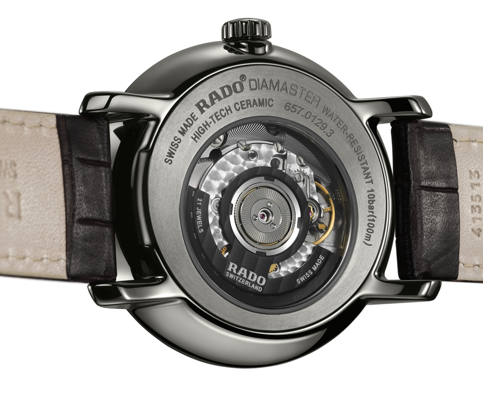Diseño: desarrollada en caja monobloque de cerámica de plasma, proceso patentado por Rado, las horas y minutos se leen en una subcarátula orientada a las 3 h, mientras que los segundos aparecen a las 9 y así la apertura para mostrar la fecha. Asimismo el conjunto se abraza a la muñeca mediante una correa de piel de cuero color gris o marrón, de acuerdo a la configuración de su elección.