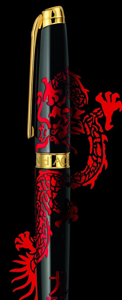 Para esta edición -limitada a 888 ejemplares, número chino de la suerte-, Caran d´Ache ha contado con la participación de Li Qiang Sheng -artista chino contemporáneo-, quien retomó los orígenes de la caligrafía para crear la imagen del dragón presente en la pluma, la cual ha sido realizada en los colores negro, rojo y oro, profundamente simbólicos para la astrología china. Disponible en dos versiones -pluma fuente de oro de 18 quilates o Roller- la nueva pieza resulta una obra maestra de artesanía.