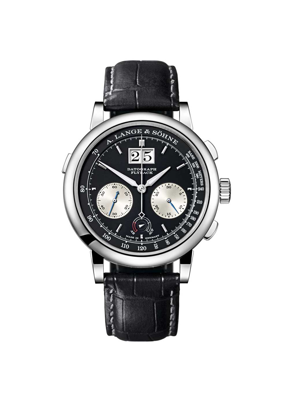 El Datograph se ha convertido en el cronógrafo insignia de A. Lange & Söhne. La armonía en la distribución de la carátula y la serie de mejoras que los ingenieros de la firma realizan año con año, demuestran una vez más que el modelo anterior ha podido superarse. La caja -fabricada en platino- ha sido ampliada a 41 mm de diámetro, así como la reserva de marcha, la cual entrega 60 h de precisión continua. Dicho logro ha sido posible gracias a un barrilete de mayor dimensión.