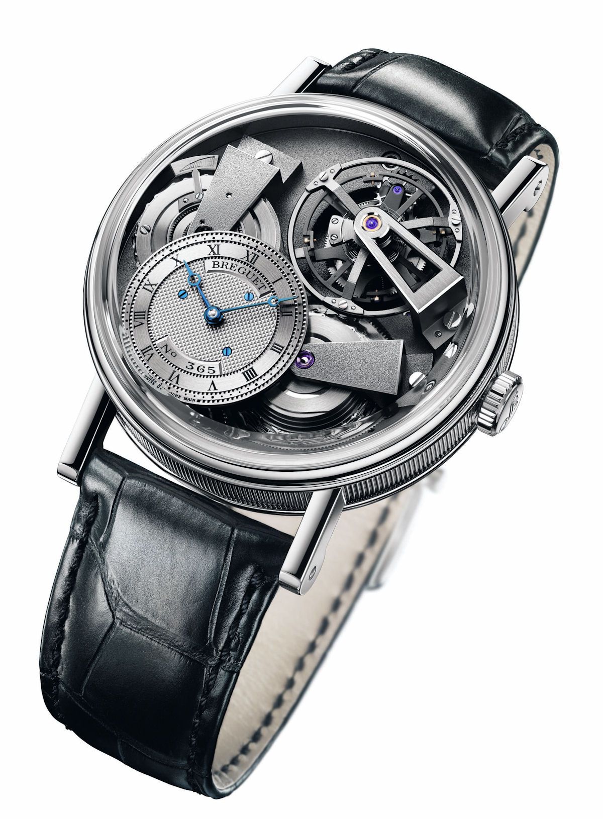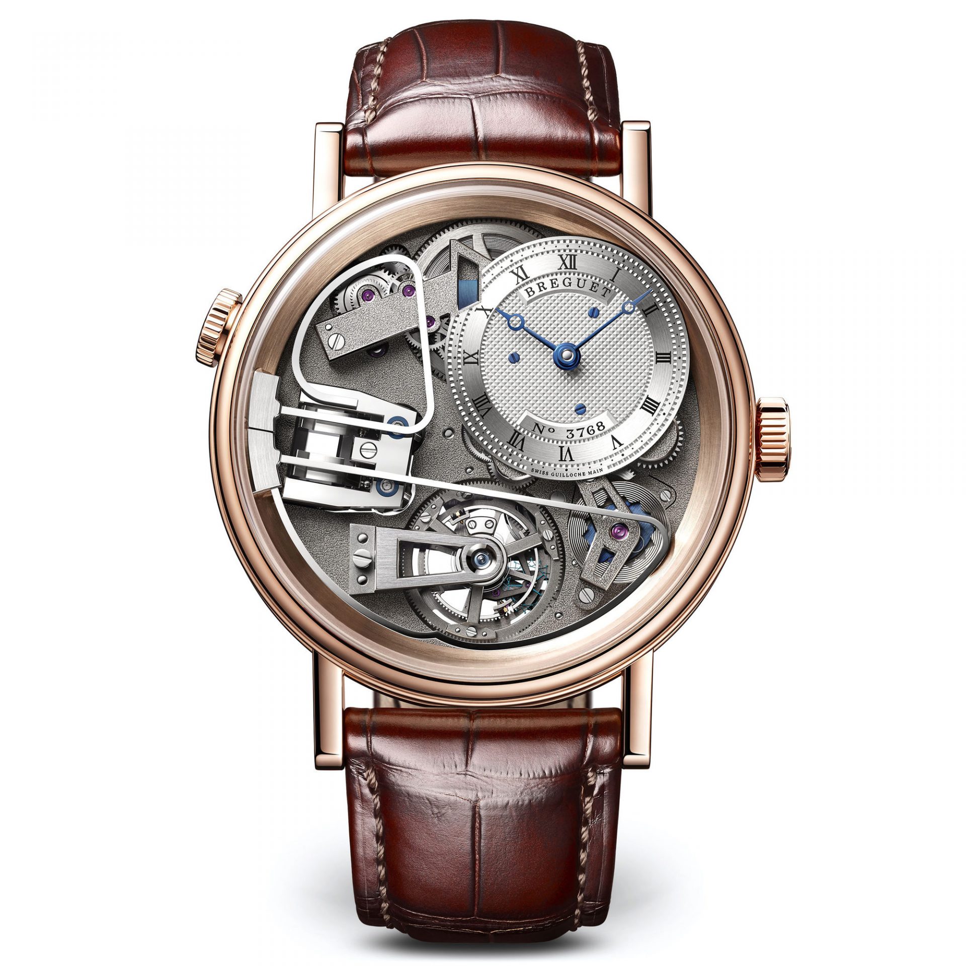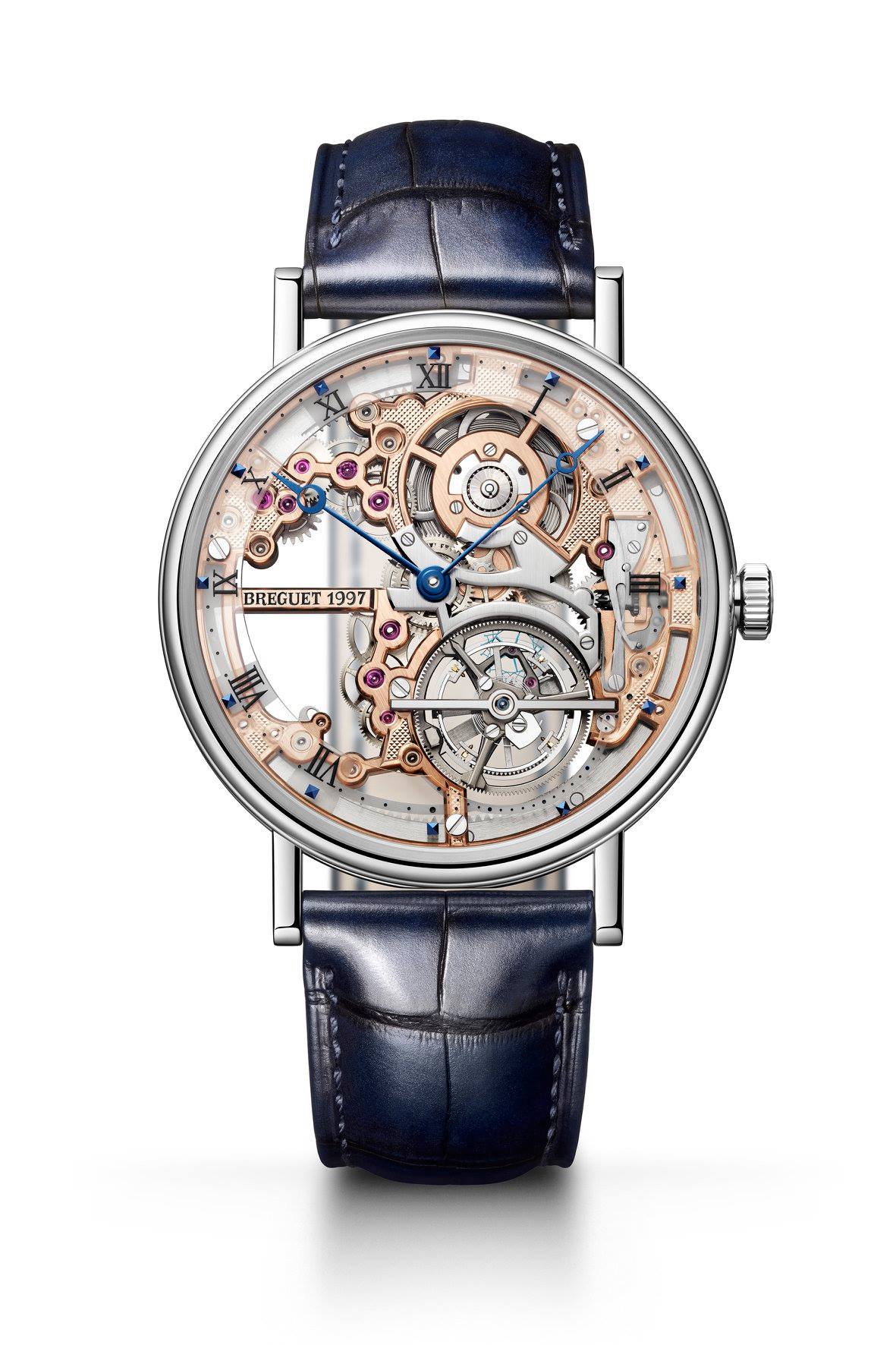 Desarrollado en caja de oro rosa con 44 mm de diámetro y con el canto finamente acanalado, luce un fondo zafiro con doble cristal. Luce una carátula de oro 18 quilates con baño de plata y decoración guilloché realizada a mano, descentrada a las 1h30. Cuenta con un movimiento mecánico de carga automática con repetición de los minutos y tourbillon 60 segundos a las 6 horas. El calibre brinda funciones de sonería, indicador de reserva de marcha de 80 horas, indicador de horas y minutos. Cuenta con espiral Breguet de y escape con paletas de silicio. Breguet ha podido realizar este hito gracias a sus investigaciones en materia acústica, adicionando una membrana de oro a la que se ha fijado un cristal de zafiro que ofrece una vista sin igual sobre el movimiento. A todas estas innovaciones se suma el uso de un regulador magnético.