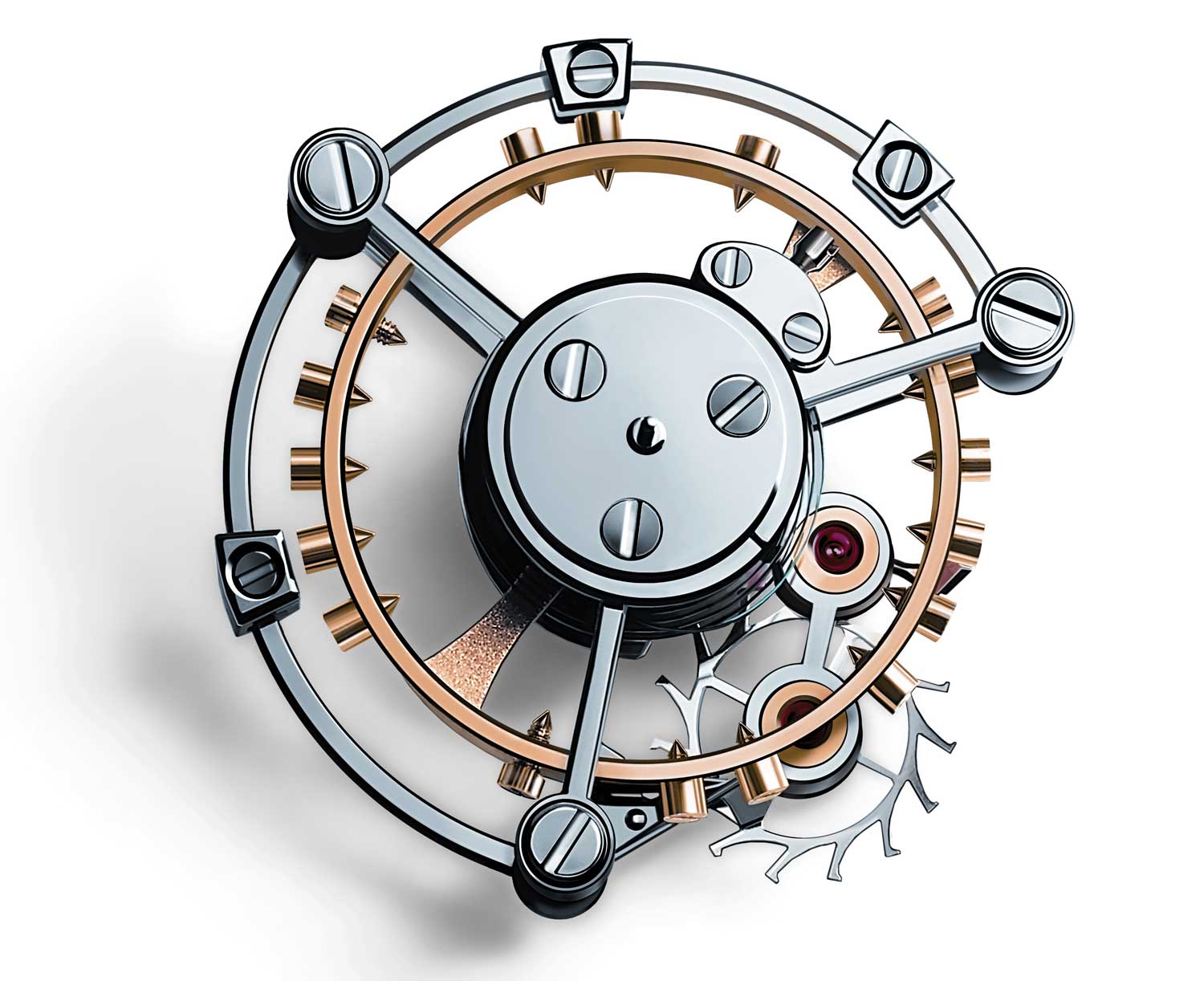 Para solucionar el problema de la gravedad, inherente a cualquier actividad humana, el maestro tuvo la idea de colocar todo el escape (es decir el volante, el muelle, el áncora y la rueda de escape, las piezas más sensibles a la gravedad) en un carro móvil que realiza una rotación completa por minuto. De esta manera, la repetición regular de las fallas desencadena un proceso de compensación mutua. Además, el cambio constante del punto de contacto que realizan los pivotes del volante en sus cojinetes garantiza una mejor lubricación.