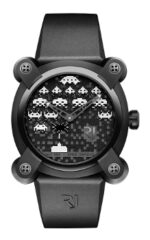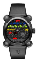 Su más reciente colaboración con TAITO Corporation, el nuevo capítulo de los “Invasores del Espacio” nos entrega en caja de 40 mm de diámetro: Space Invaders® 40, que posibilita el retorno del tiempo a las máquinas de videojuegos de los años 80. Desarrollado en acero con tratamiento PVD para la caja, la carátula cuenta con una base de tres alturas, la cual brinda profundidad extraordinaria al tiempo que se utiliza el granallado y grabado en vertical a fin de entregar una estética llena de texturas.