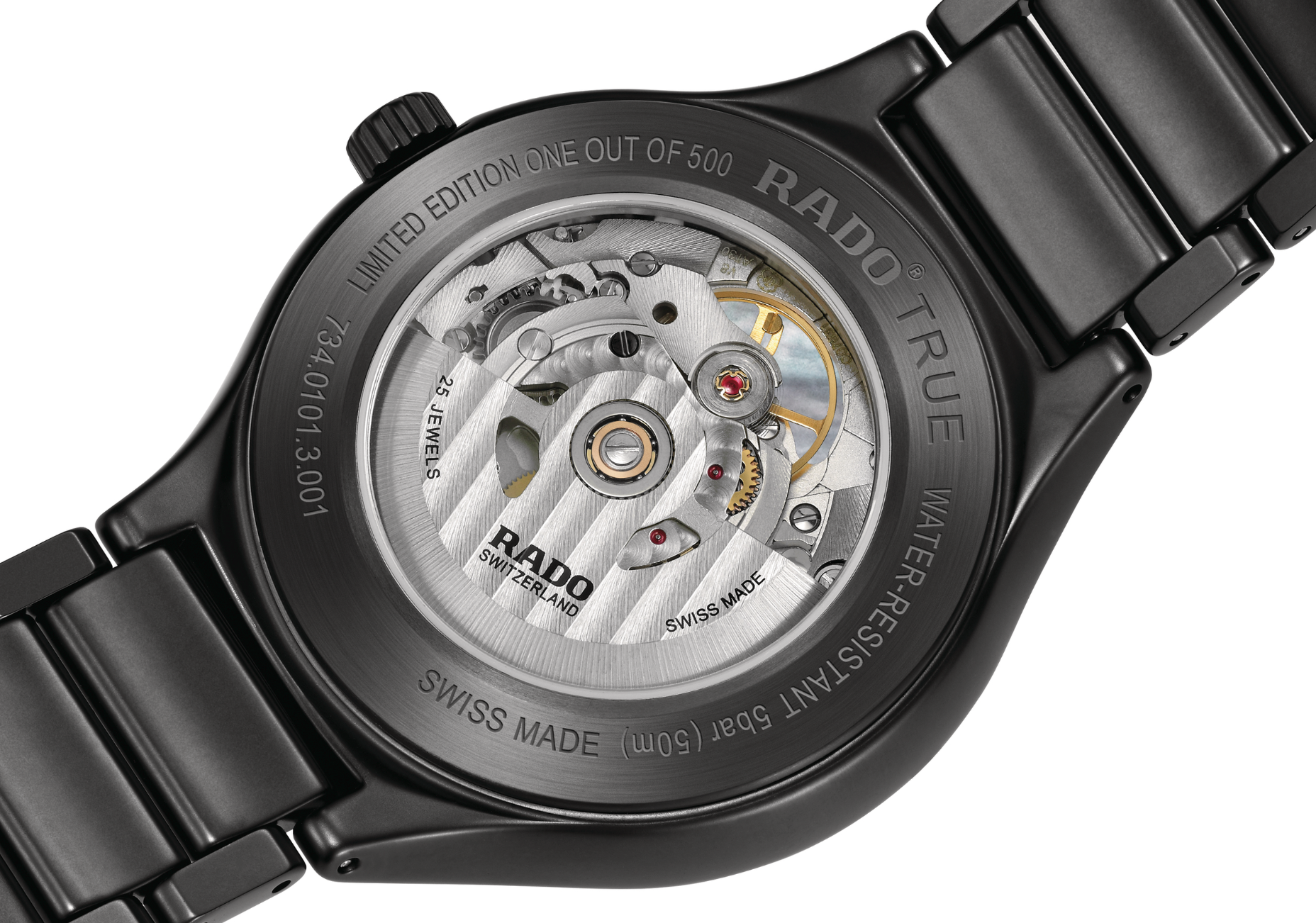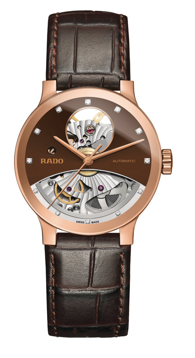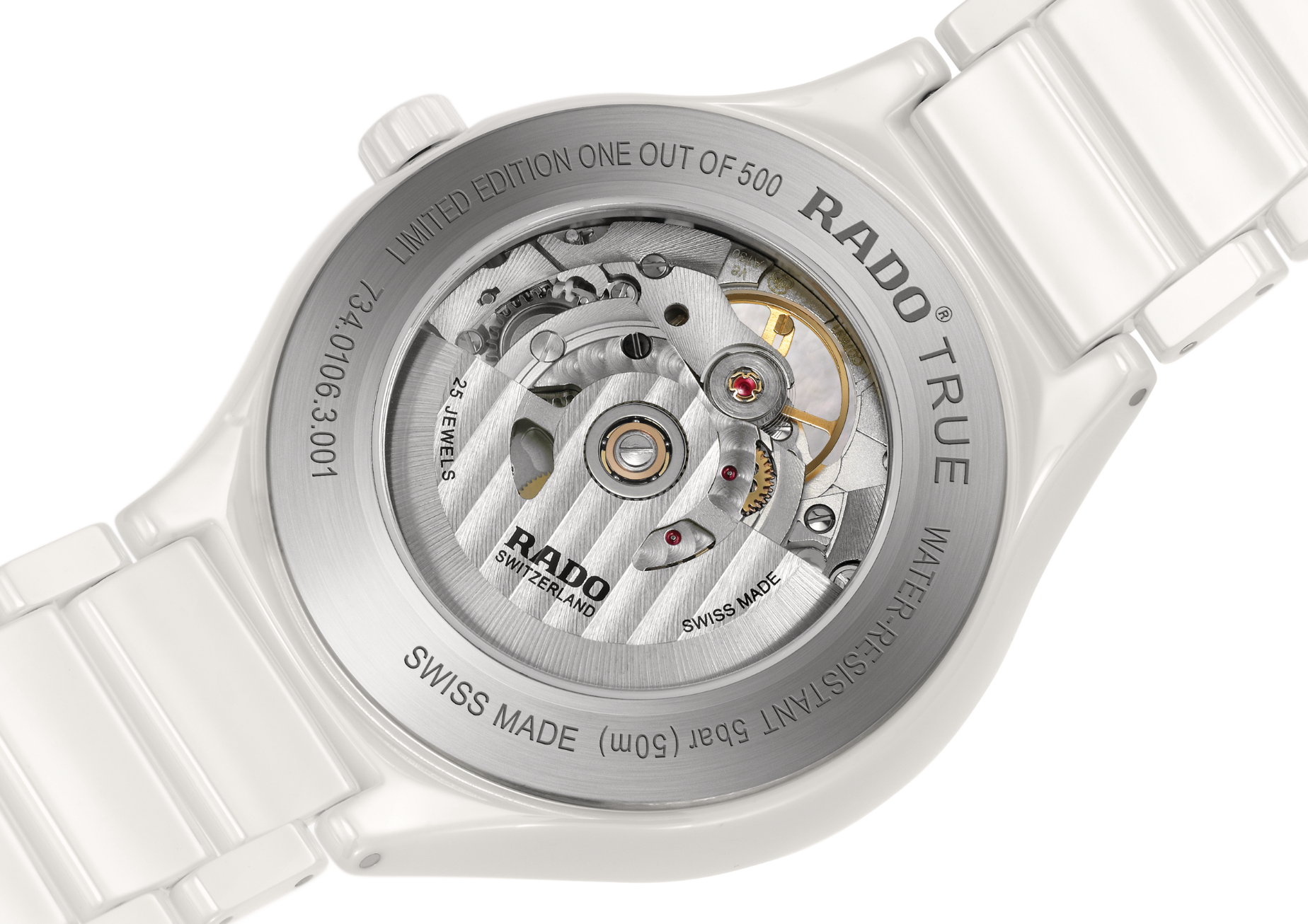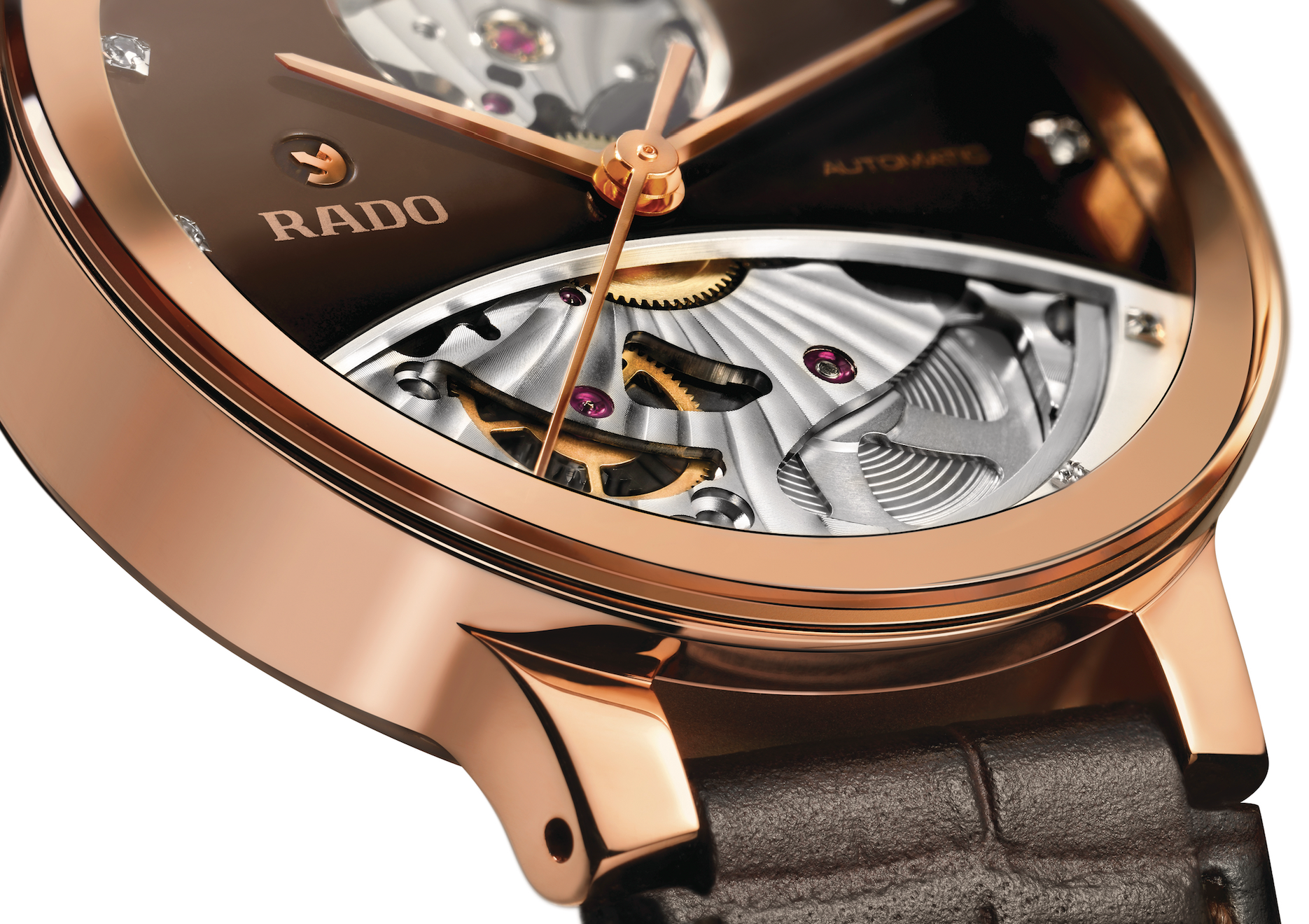 Existe una tendencia en la industria por mostrar el movimiento que late al interior de un reloj mecánico, es por ello que Rado decide mostrar su calibre mediante la propuesta de una carátula hecha de una fina capa de –apenas– .6 mm de grosor, la cual brinda un resultado excepcional y sugerente. Dos referencias se proponen: caja de cerámica blanca o negra –de 40.1 mm– de alta tecnología, por tanto pueden ser portadas por la mujer, que desea complementar su atuendo con el complemento perfecto, o por el hombre, que se apasiona por la mecánica relojera.
