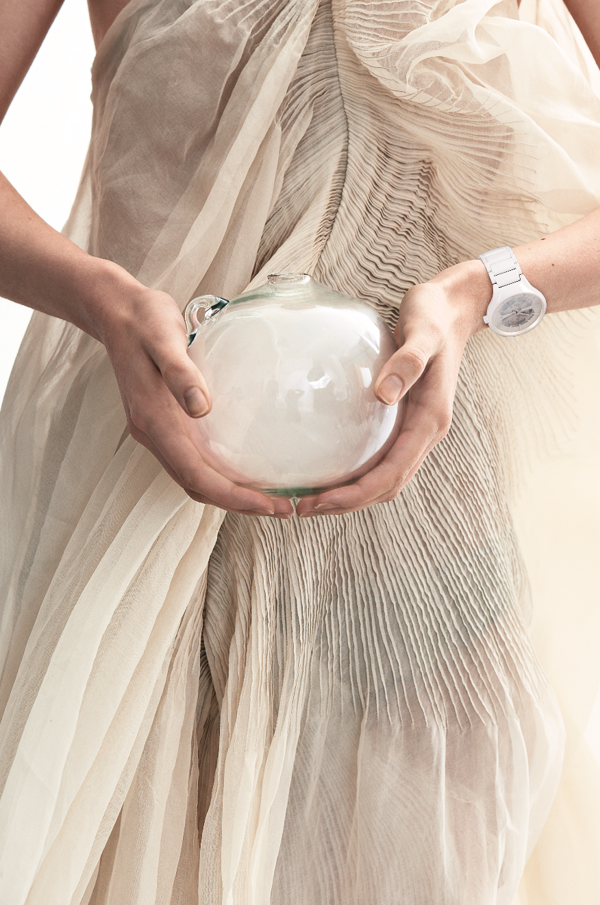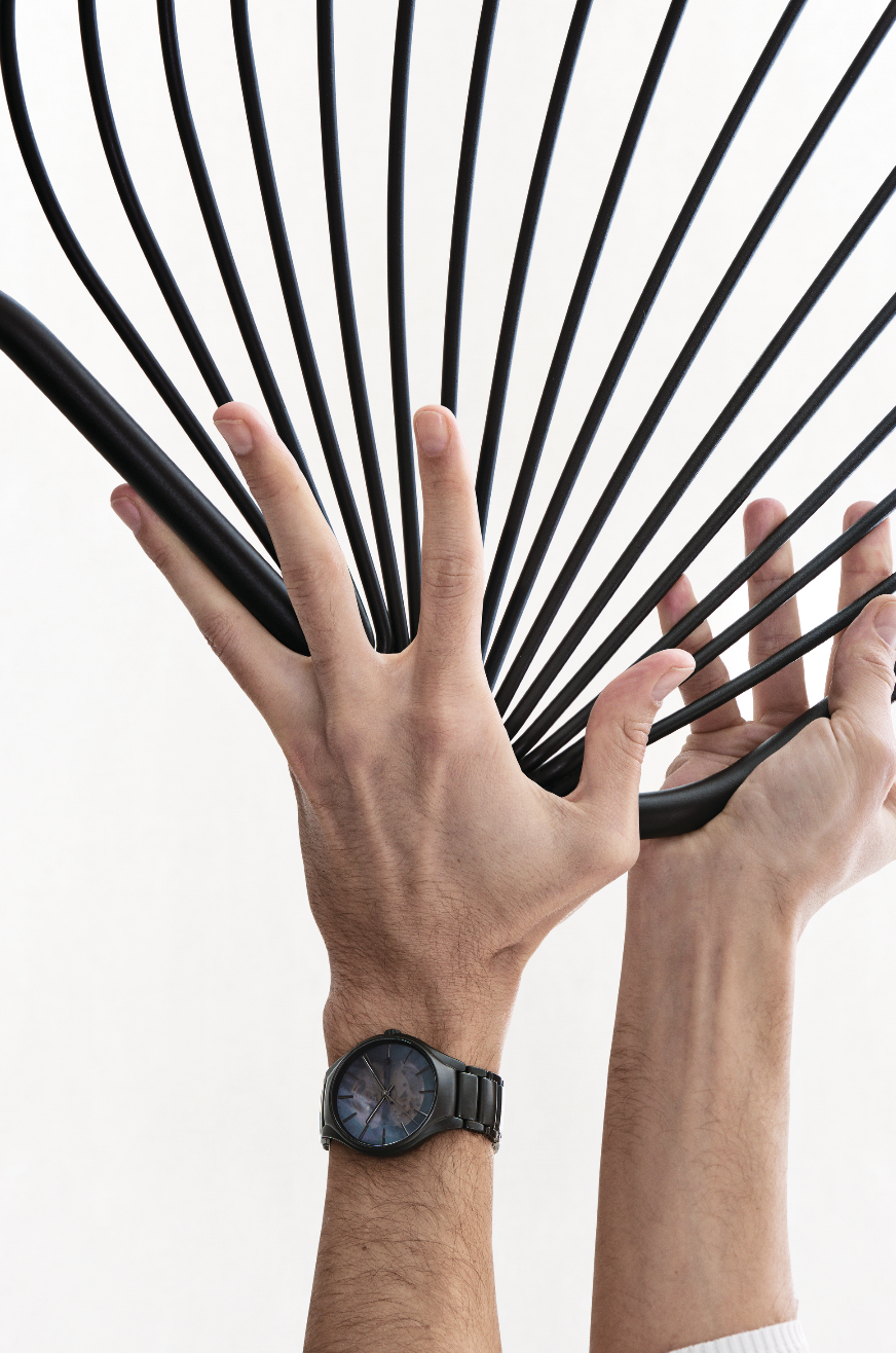 El lanzamiento de relojes open heart recibe tres piezas: las dos primeras se abrazan a la muñeca mediante eslabones de cerámica, mientras que una tercera hace lo propio a partir de una correa de cuero color marrón. No obstante, la propuesta central de la pieza continúa siendo la exhibición del corazón palpitante (órgano regulador) a todo su esplendor mediante una apertura en la carátula, que funge también como elemento de diseño gracias a su forma inspirada en la Luna.
