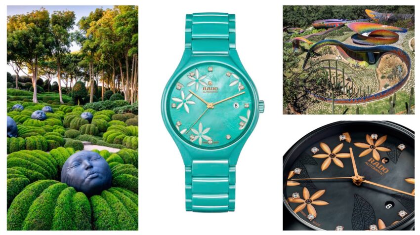 En Rado se es consciente del papel que juega la naturaleza en el diseño, así como el impacto positivo que el tiempo que se pasa en el mundo natural lejos del estrés y las tensiones de la vida cotidiana conlleva. La idea de la marca es desconectar, relajarse, respirar y renovarse. Esta combinación de diseño y naturaleza sigue siendo tan intrigante que se decidió continuar la asociación y extenderla para incluir los Grandes Jardines del Mundo.