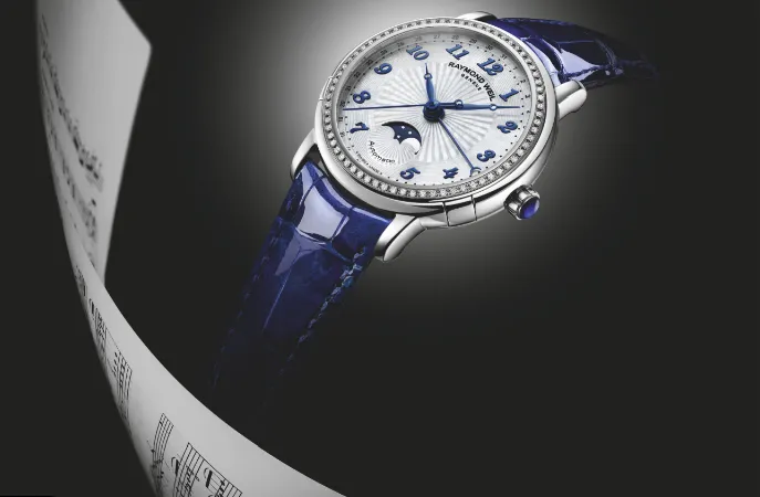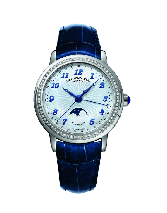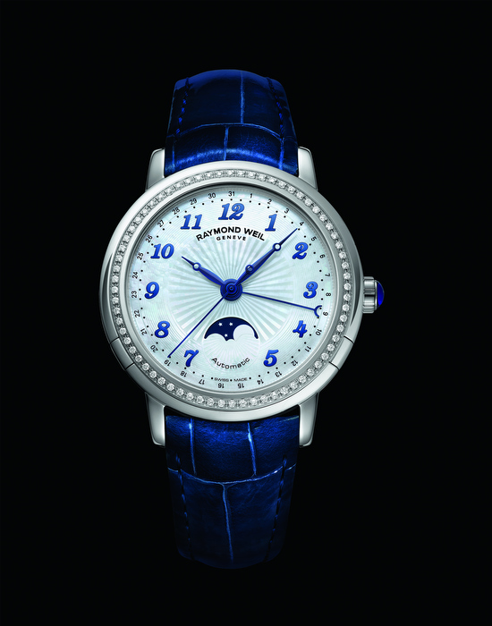 La Luna simboliza totalmente la feminidad por ello desde el punto de vista estético, esta última incorporación a la gama de Raymond Weil incorpora su sistema patentado de pulsadores integrados en la caja. Estos ajustan la fecha a las 4 en punto y la posición de la luna a las 8 en punto.