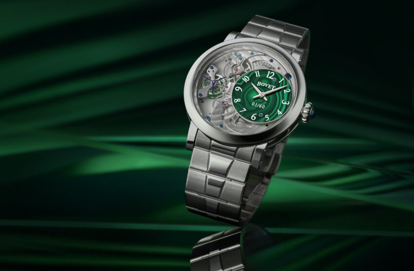 Las piedras evocan la persistencia en el tiempo que Bovet celebra con dos carátulas en malaquita y ojo de tigre para su reloj más deportivo: naturaleza esculpida con maestría artesanal.