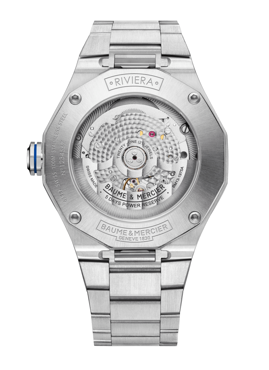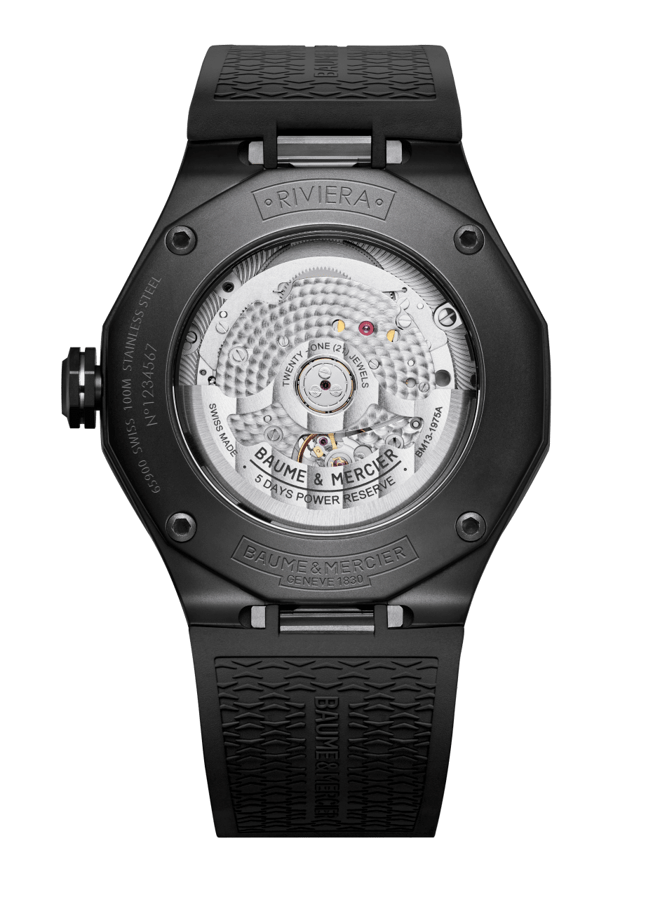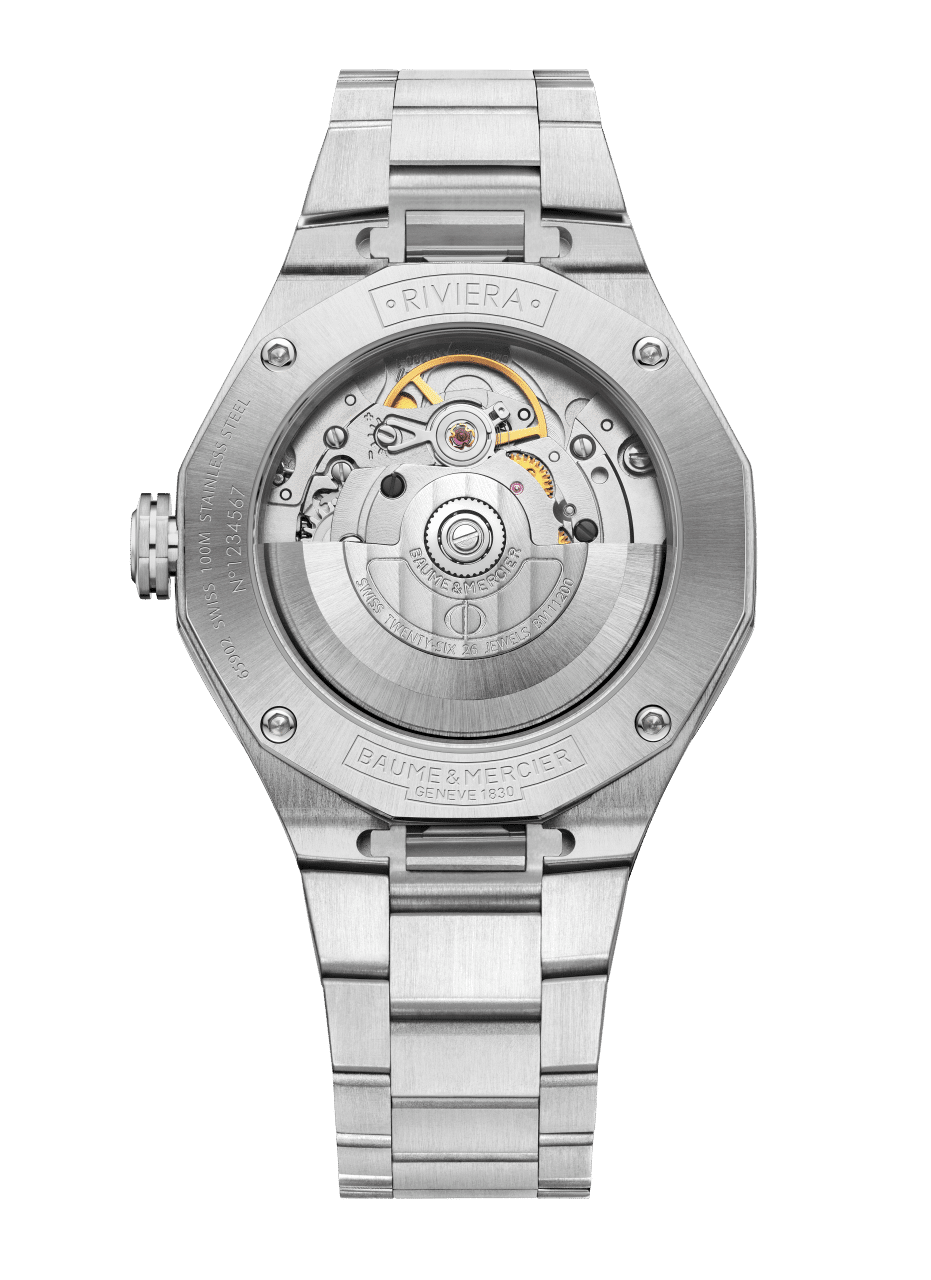 Riviera también atraca en el puerto deportivo para mostrar una versión de lujo equipada con el calibre propio Baumatic, conocido y aclamado desde hace varios años, especialmente por su éxito con la colección Clifton. En último término, pero igualmente destacado, el Riviera se presenta asimismo con mecanismos mecánicos en una versión de alta gama dotada del calibre manufactura Baumatic conocido y apreciado muy especialmente por su éxito en la colección Clifton.