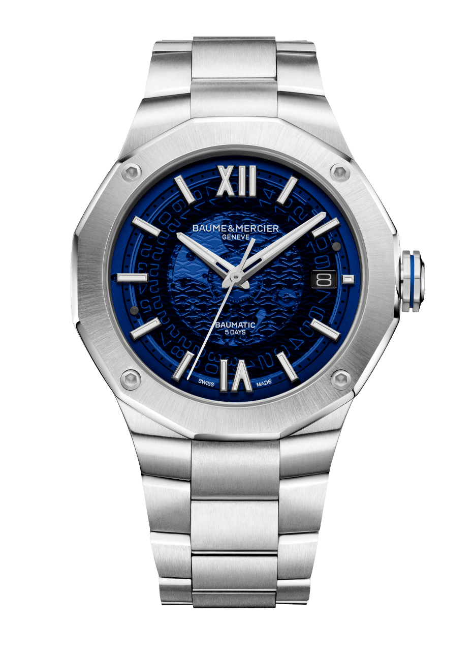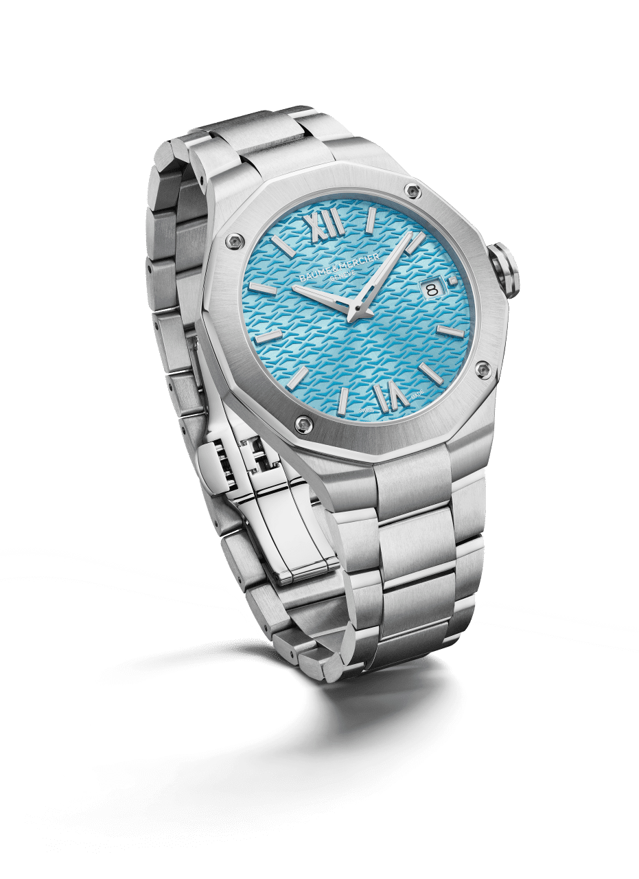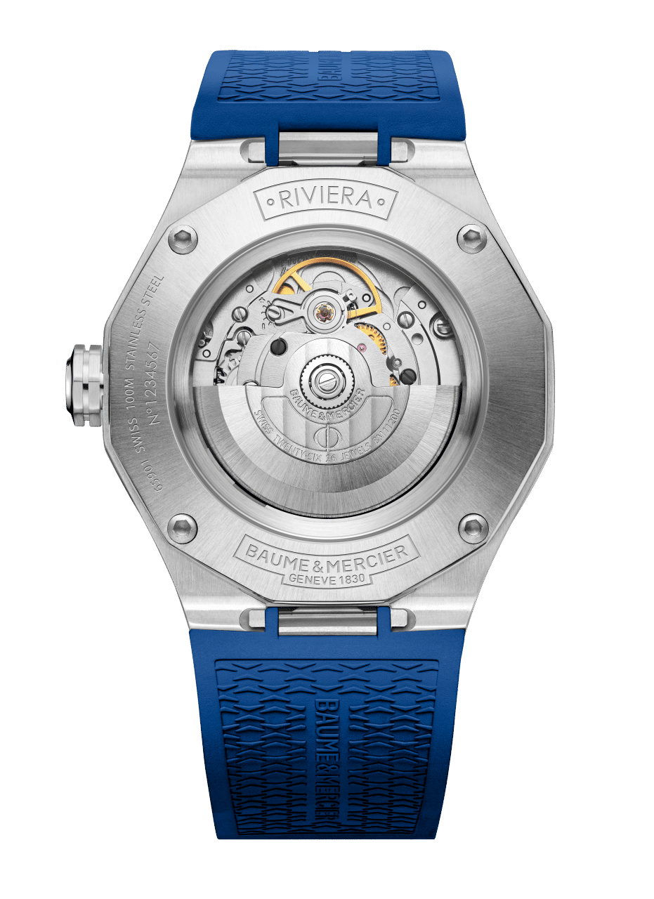 Riviera también atraca en el puerto deportivo para mostrar una versión de lujo equipada con el calibre propio Baumatic, conocido y aclamado desde hace varios años, especialmente por su éxito con la colección Clifton. En último término, pero igualmente destacado, el Riviera se presenta asimismo con mecanismos mecánicos en una versión de alta gama dotada del calibre manufactura Baumatic conocido y apreciado muy especialmente por su éxito en la colección Clifton.