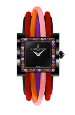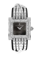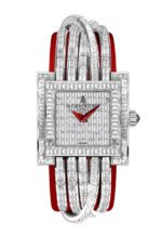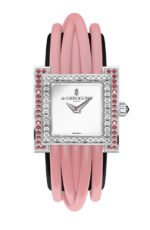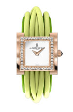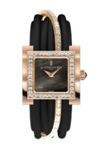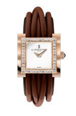 Esta es, ante todo, la creación de una tierna complicidad, polifacética y tornasolada, entre el reloj y la mujer que lo lleva. Los cordones de piel la atrapan y liberan a la vez, recurriendo a su flexibilidad para mantenerse fiel a cualquiera de sus movimientos.