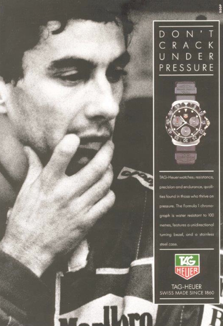 Entrando en materia relojera, Senna da Silva comenzó una estrecha relación con TAG Heuer el año de su llegada a McLaren, en 1988, y es que el mismo Ron Dennis era accionista de la Swiss Avant-Garde. Compañía suiza que había sido adquirida por TAG en 1985.