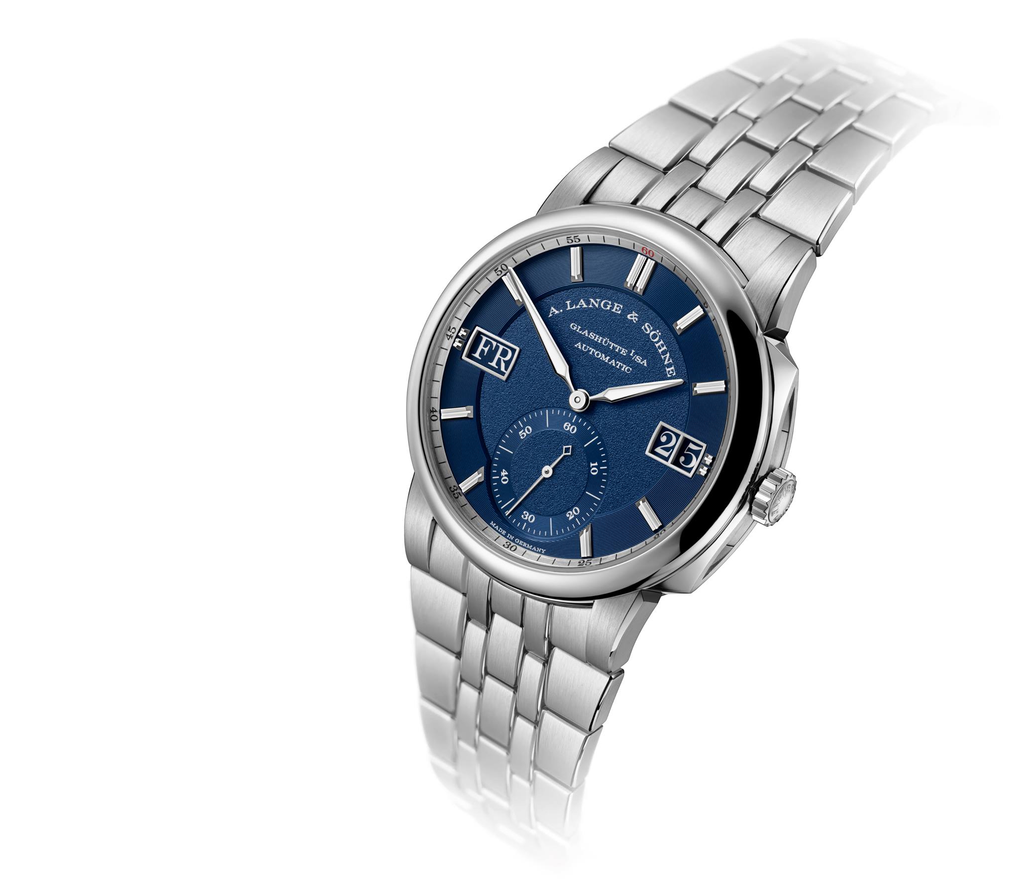 Es el primer reloj fabricado en acero inoxidable como tal dentro de Lange. Ya que, las ejecuciones anteriores se abrazaban al pulso por medio de correa y fueron piezas especiales o grandes complicaciones.