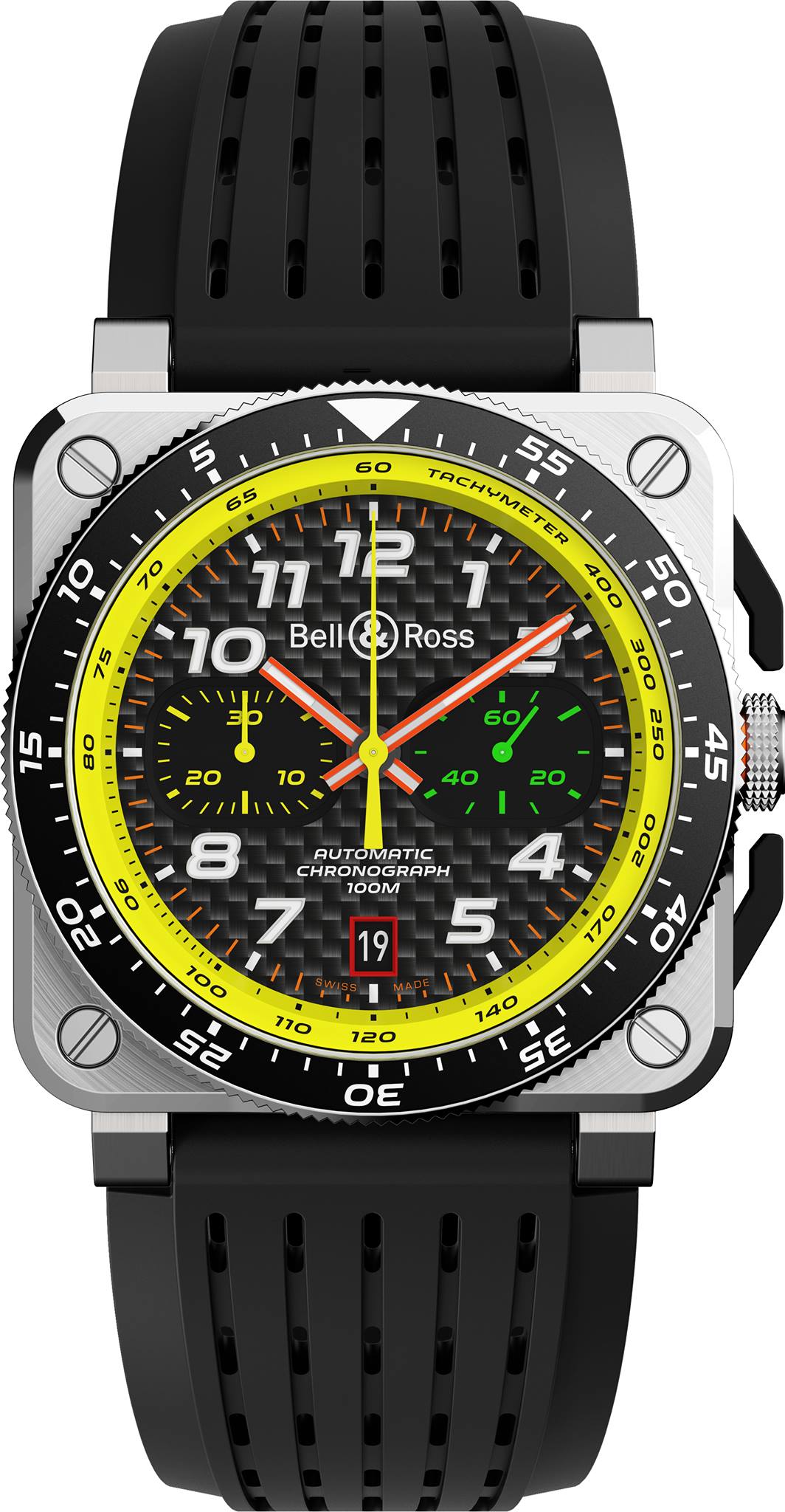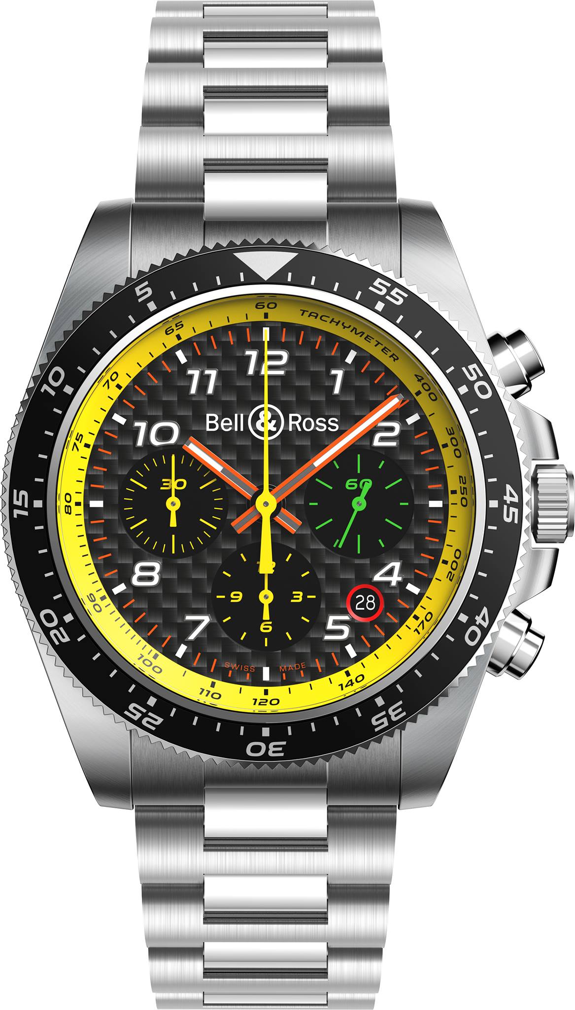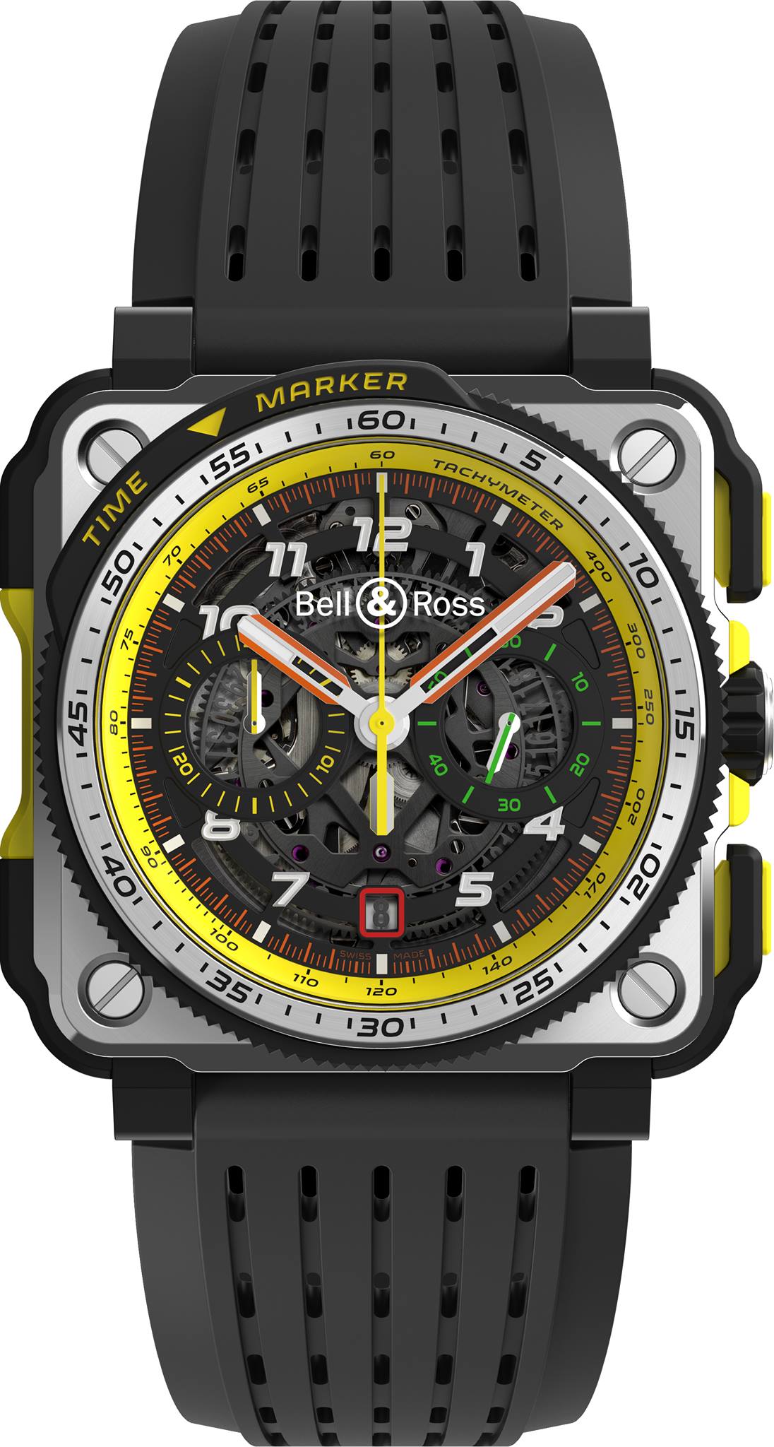Se presenta en Edición Limitada a 20 ejemplares, posee el calibre mecánico de remonte manual BR-CAL.283 propiedad de la marca, que vibra a 3 Hz y ofrece 4 días de autonomía. Brinda las funciones de: horas, minutos, segundos, cronógrafo, indicador de autonomía y tourbillon volante en punto de las 6 horas. Todo ello dentro de una caja de titanio pulido y satinado con cerámica mate e inserciones de caucho. Cuenta con un sistema monopulsador para la ejecución del crono y ofrece un fondo de cristal de zafiro con tratamiento antirreflejos. La marca celebró 4 años de patrocinio con el equipo de F1® Renault, y a esta pieza se le suman tres cronógrafos más, prueba de lo exitosa que ha sido su cooperación.
