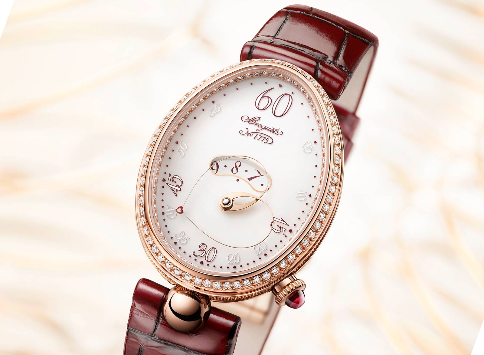 La Maison presentó una aguja de minutos en forma de corazón. Sus curvas se expanden o contraen suavemente como por arte de magia a medida que se abre paso alrededor de la carátula ovalada tradicional. Reine de Naples Cœur viene en una caja de forma ovalada de oro rosa que enmarca una carátula embellecida con detalles en rojo bermellón que combinan muy bien con el rubí que adorna la corona y la correa de cuero a juego. Al inteerior porta el calibre 78Ao de manufactura con 4 patentes para el sistema de minutero por aguja de corazón. Uno de los mejores relojes para mamá.