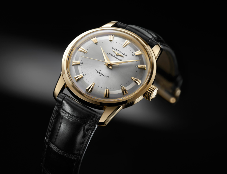 La línea Longines Conquest se introdujo en 1954, incorporando el diseño clásico de reloj de vestir de mediados de siglo. El diseño limpio y sencillo condujo al éxito de esta línea, lo que permitió a la marca crear varias iteraciones del modelo. La apariencia general comparte matices similares con los modelos militares antiguos de la década de 1940 que siguen siendo amados por los coleccionistas antiguos de todo el mundo.