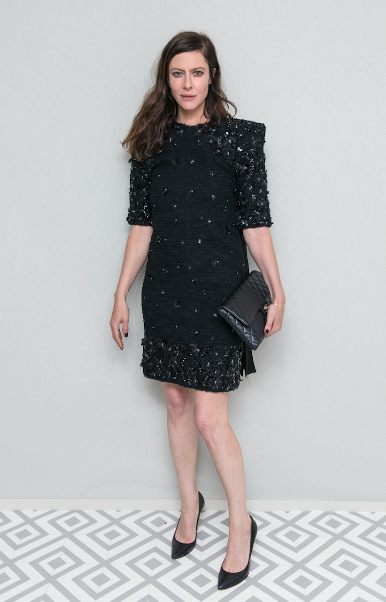 Penélope Cruz, resaltó su belleza con un vestido en gasa color menta, de la colección RTW Primavera-Verano 2018, mientras que Anne Berets, escritora francesa, usó un vestido negro en encaje, accesorios y bolsa Chanel.