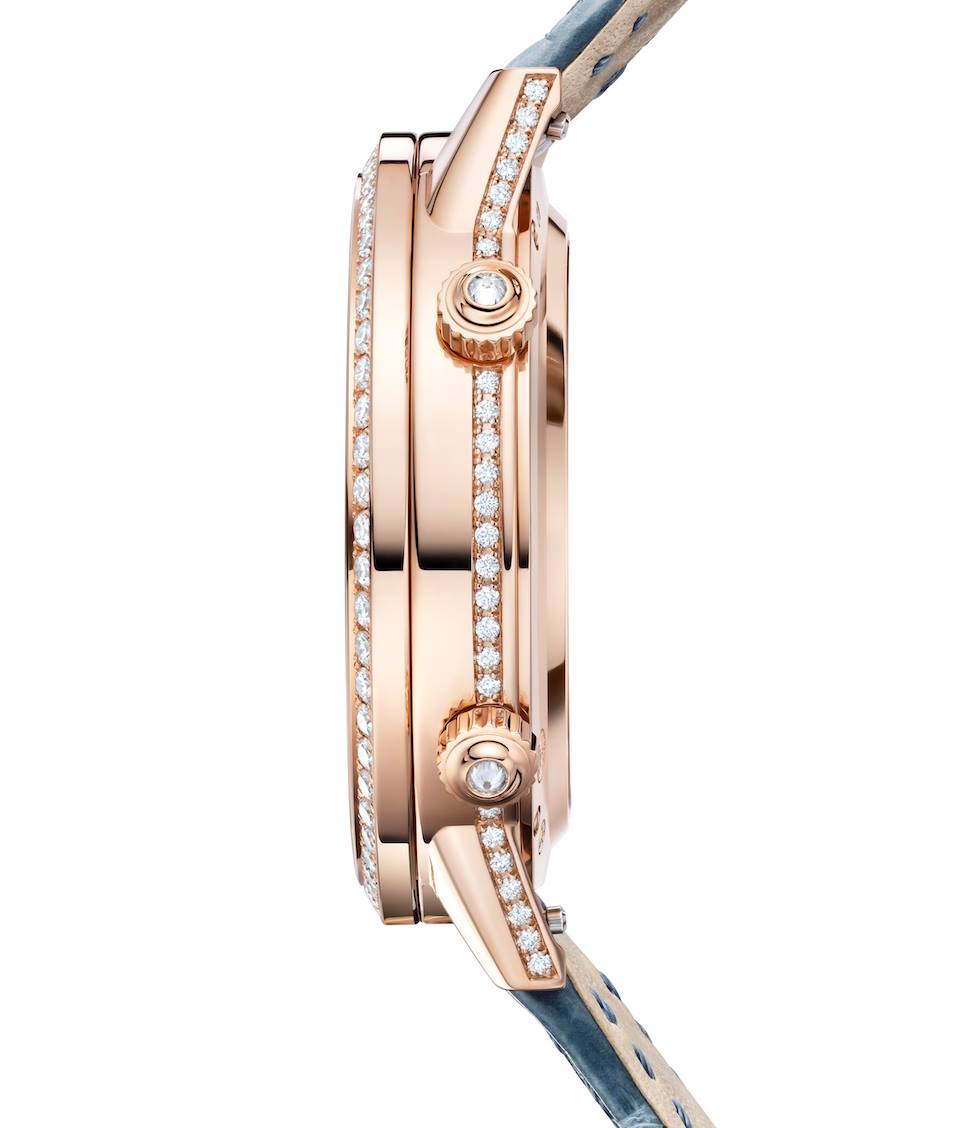 Dotado de un calibre Jaeger-LeCoultre 935 y 265 componentes que habitan en el interior y exterior de esta pieza de Alta Relojería, este modelo deja a la vista de su poseedora el espíritu puntual y clásico de una de las colecciones más deseadas.