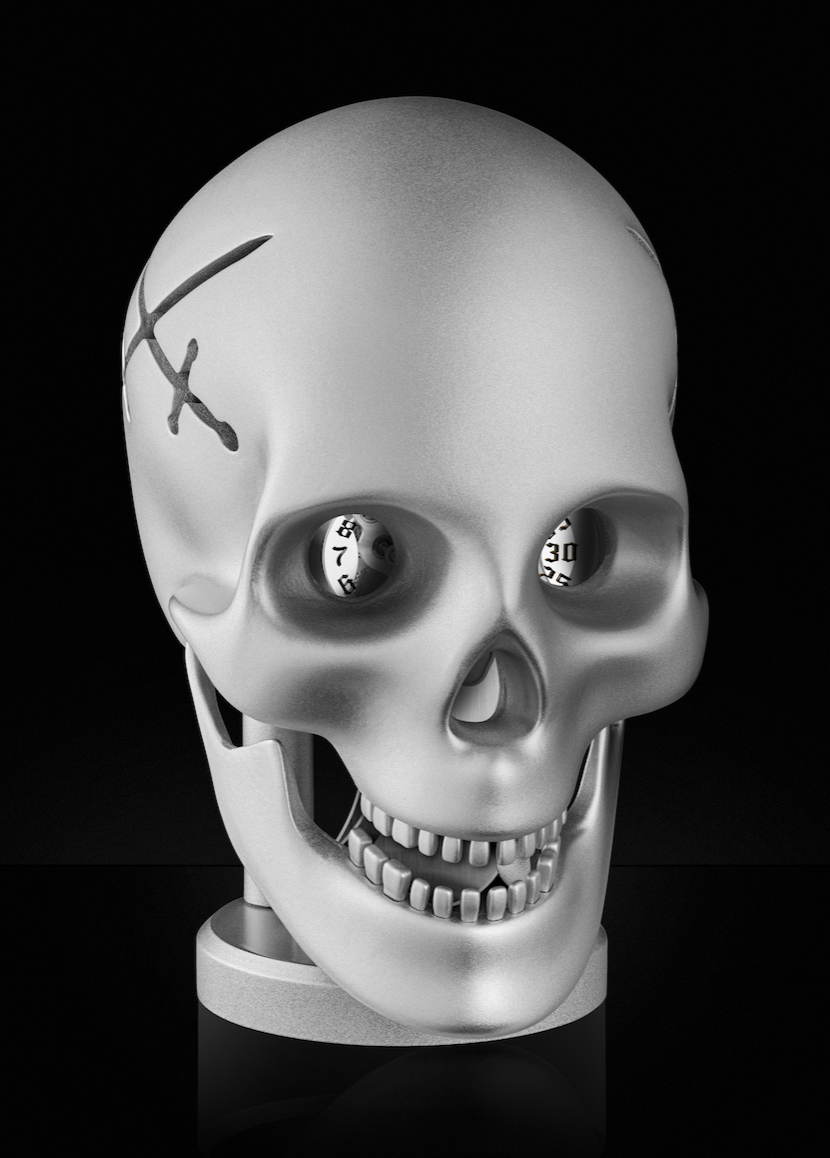 Dotado de un calibre 1853 HMD con una reserva de marcha de hasta 8 días, Requiem es el reloj de mesa que piensa en la puntualidad todo el tiempo. Su diseño de cráneo humano, diseñado en colaboración con Kostas Metaxas, rompe con todas las ideologías tradicionalistas de la Alta Relojería creando así nuevos pensamientos.
