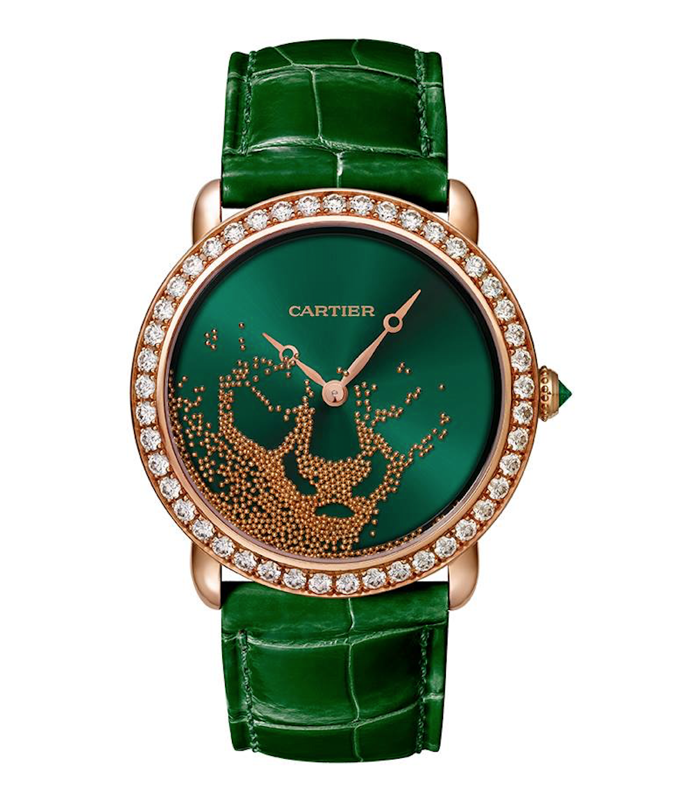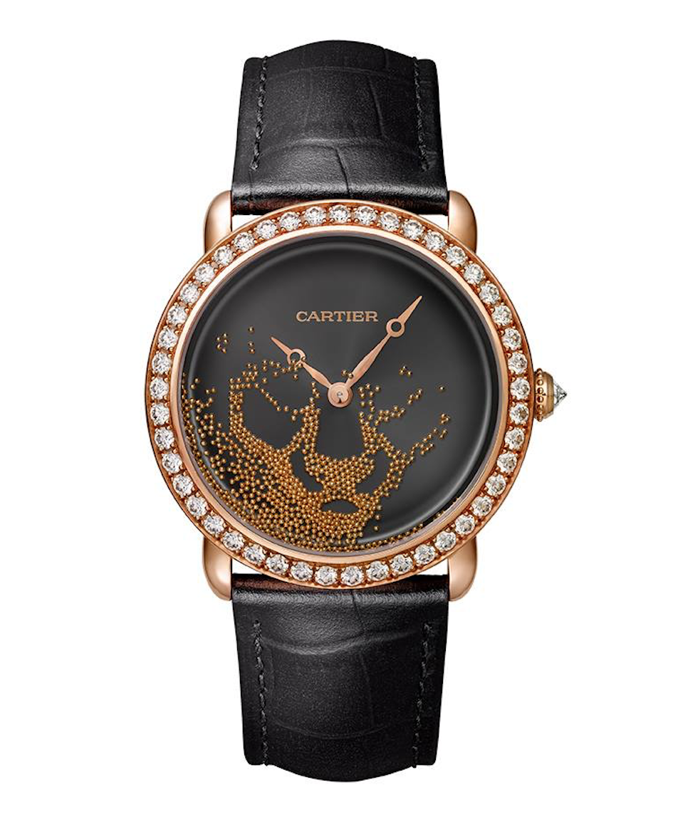 Revelation d´une Panthère es, sin duda, una de las revelaciones más fascinantes de la Casa Relojera que busca representar de una manera tradicional y a su vez mágica, la aparición del animal más emblemático de la firma: la pantera en forma de esferas de oro.
