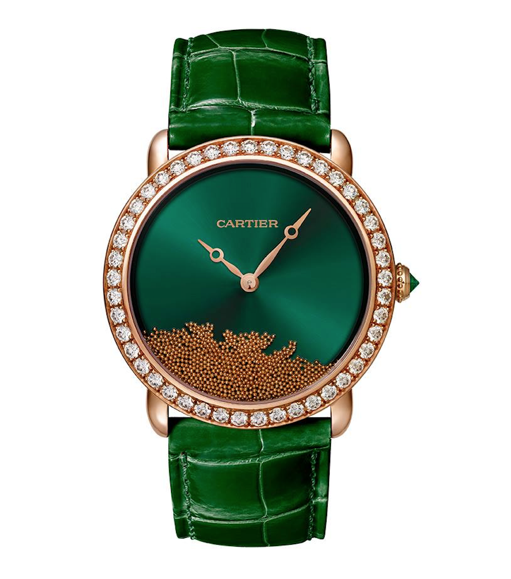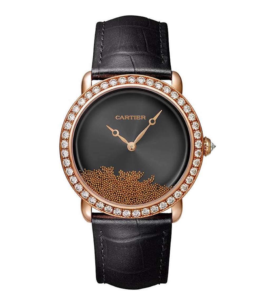 La artesanía y los detalles con los que se elaboraron cada una de estas magníficas piezas, tomaron como inspiración los relojes de arena y el caer delicado de sus partículas que marcaban el tiempo. Fue por esta razón que Cartier ha diseñado 900 cuentas de oro con la finalidad de formar la silueta de la pantera dentro de la carátula del reloj al momento de voltearlo.