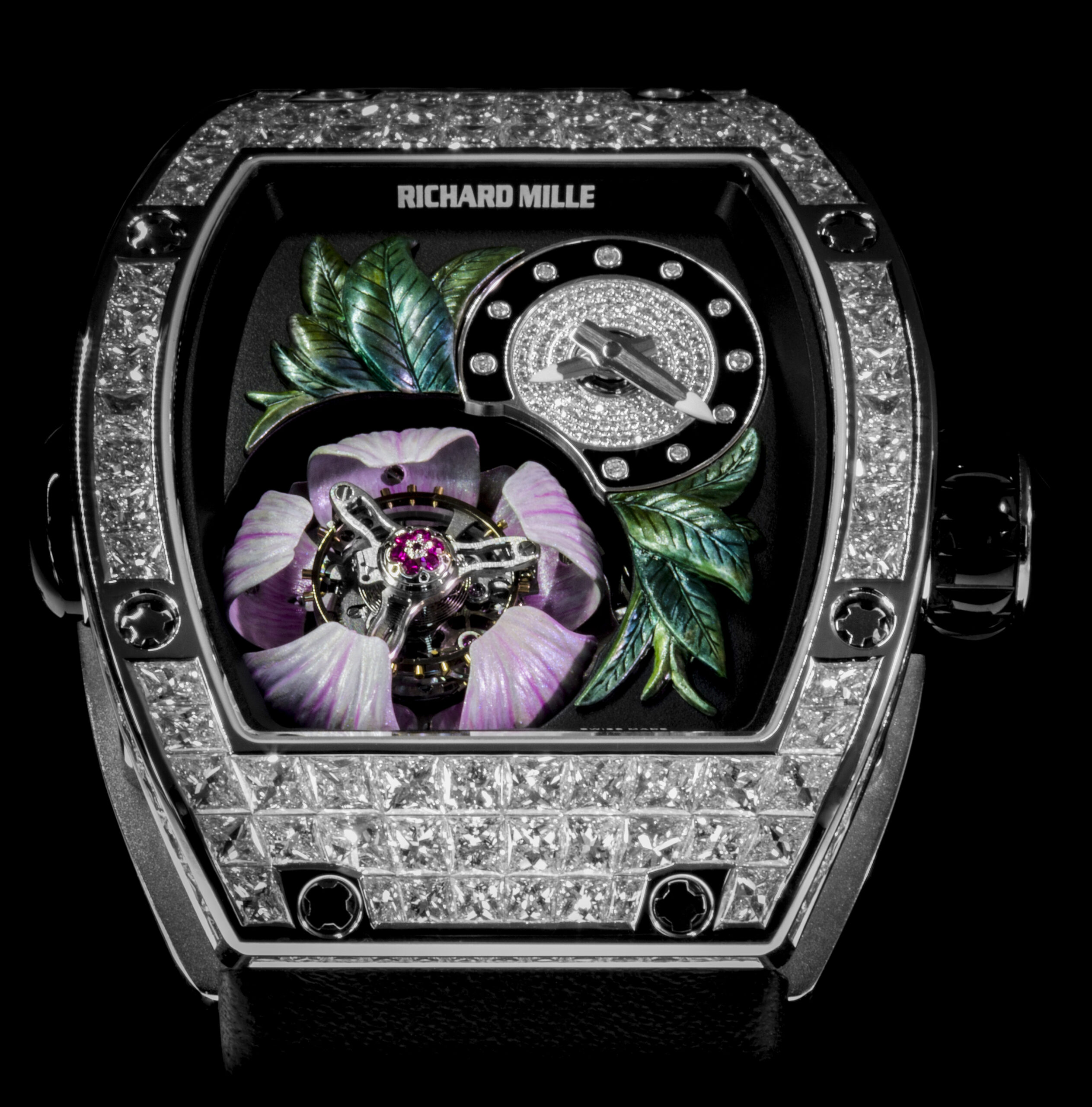 En esta ocasión Richard Mille es el vivo ejemplo de estas tradiciones y lanza su primer tourbillon volante, que es acunado y protegido por unos pétalos de magnolia, hechos en oro blanco, que abren y cierran cada hora para dejar ver el mecanismo.