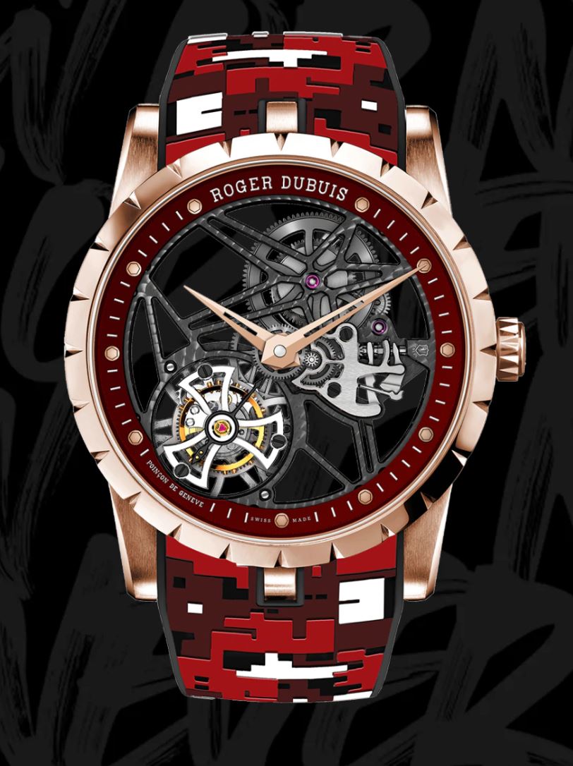 Como parte del lanzamiento de esta visión, Roger Dubuis presenta sus primeras tres piezas únicas. Todas basadas en un best seller de la firma: Excalibur Flying Tourbillon.