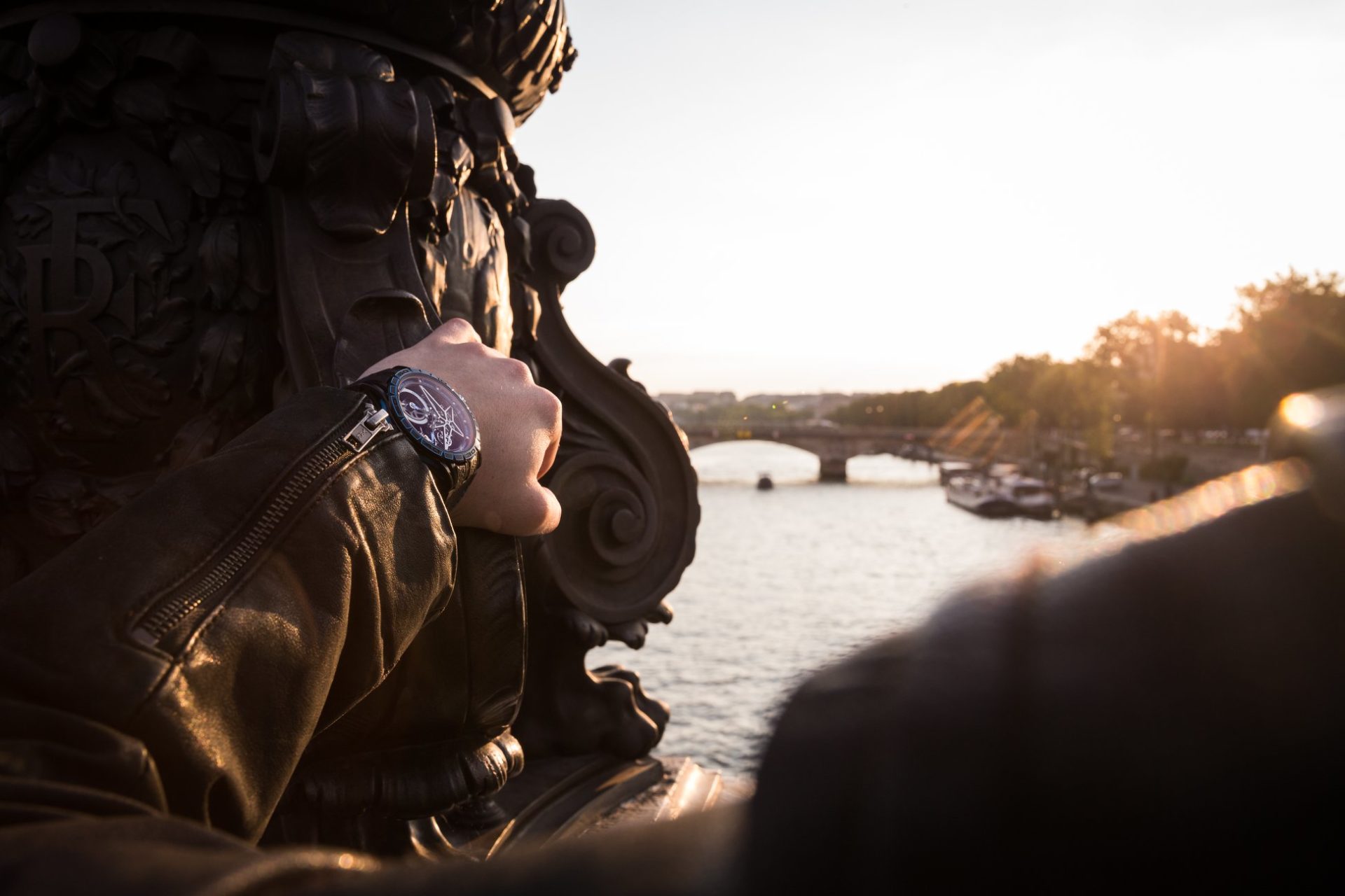 La pieza exhibe el trabajo del rotor asociado a la mecánica automotriz en todo su esplendor, haciendo evidencia que la conexión entre la relojería y la industria automotriz son excepcionales.