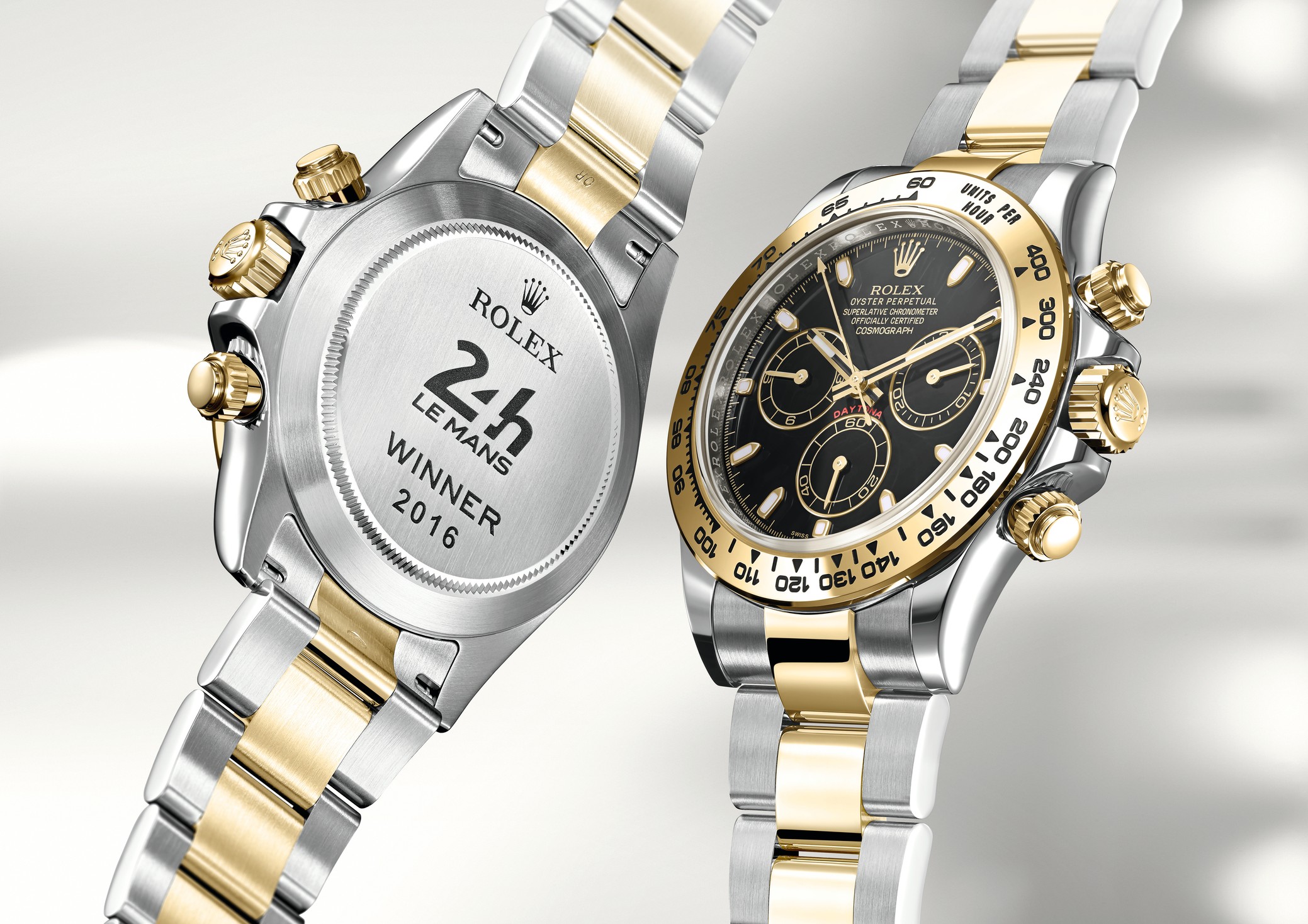 En homenaje al Daytona International Speedway, Rolex añadió el nombre “Daytona” en la carátula del cronógrafo, mismo que fue creado exclusivamente para los pilotos de carreras: el Cosmograph. Desde entonces, la presencia de la marca Rolex en auto de competencia ha crecido de manera constante. Rolex ha sido el principal patrocinador de las 24 horas de Daytona -en Florida- desde 1992, y desde 2001 es Cronometrador Oficial de les Heures du Mans 24, la carrera más antigua de autos deportivos en la modalidad de resistencia.