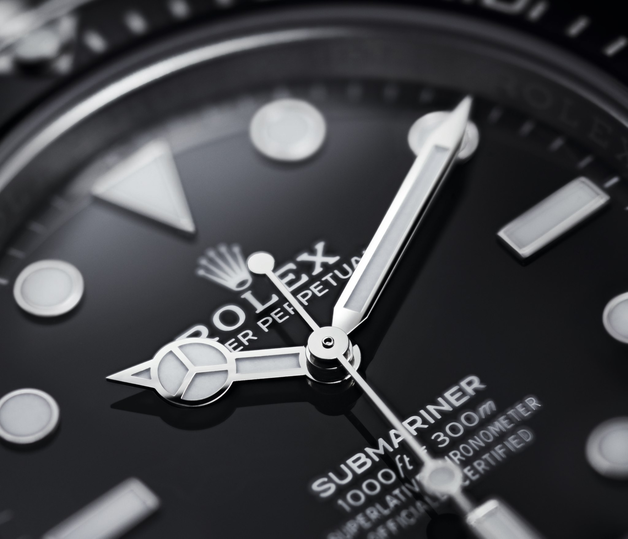 La tecnología patentada de la marca está presente en todos y cada uno de los nuevos Submariner. Además de exhibir un diseño limpio y claro enfocado a lo que debe ofrecer un reloj de buceo. Las agujas de las horas y de los minutos claramente diferenciadas por su tamaño y su forma, así como los índices con formas geométricas elementales —triángulo, círculo y rectángulo—, contribuyen a una lectura de la hora instantánea y fiable que evita a los submarinistas cualquier riesgo de confusión bajo el agua.