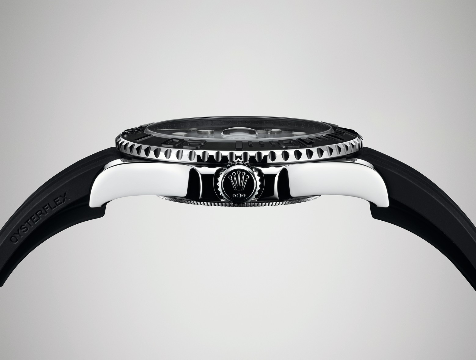 Desarrollado en caja de oro blanco de 42 quilates, el nuevo reloj marca la introducción de este metal a la línea Yacht-Master, mientras que está dotado de las últimas tecnologías de Rolex como el tratamiento luminiscente Chromalight y del calibre 3225 con escape Chronergy patentado, además de contar con una espiral paramagnética Parachrom y amortiguadores Paraflex.