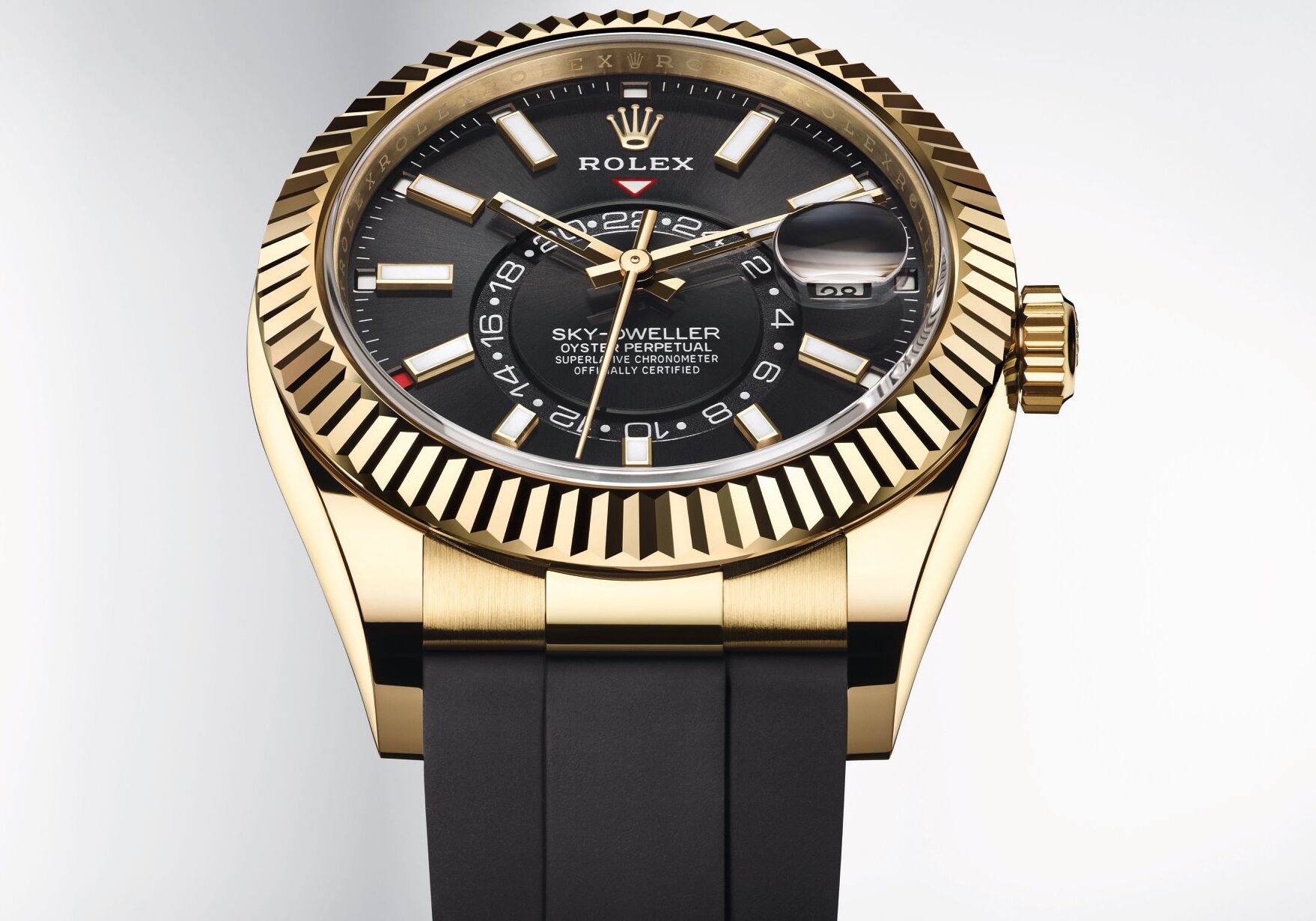 Rolex Sky-Dweller se presenta por primera ocasión con brazalete Oysterflex y se ve… ¡Increíble! El legendario y moderno reloj para el viajero frecuente, que fuera presentado en 2013, ahora exhibe una ejecución de caja de oro amarillo en combinación con el famoso brazalete de la marca, patentado y excepcional.