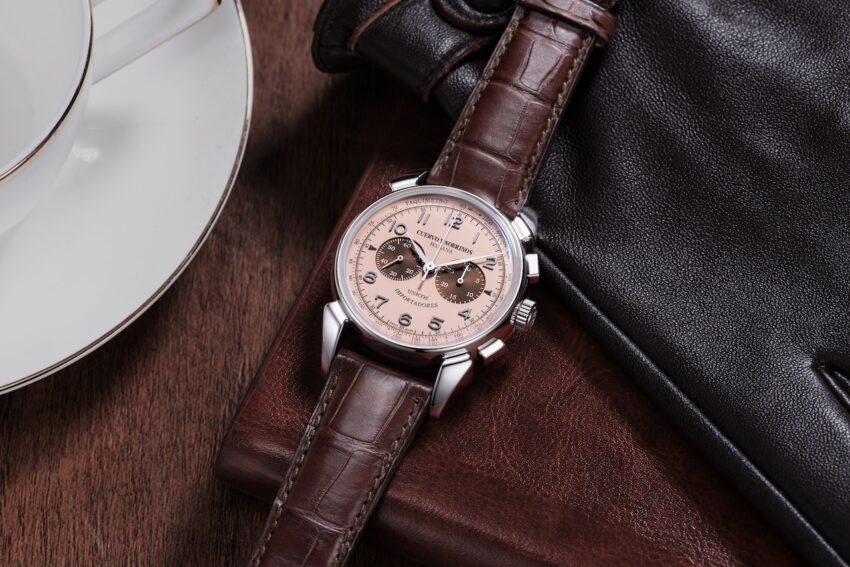 El toque único y claramente vintage de Cuervo y Sobrinos nos trae Historiador Cronógrafo 1946. Es un reloj con funcionalidad y calibre moderno pero que cuenta con toques de diseño que vienen del extenso pasado de Cuervo y Sobrinos. La marca llama esta carátula de tipo “panda” pero con un color salmón mezclado con contadores en un color “tabaco” profundo. Hecho para audiencias modernas, esta reinterpretación representa la filosofía de un fabricante como Cuervo y Sobrinos a la perfección.