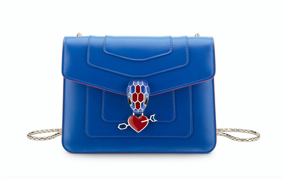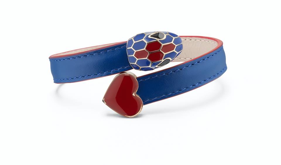 El rojo que evoca la pasión y el azul que despierta la electricidad del amor, se mezclan en cada uno de los accesorios que a su vez resaltan la cabeza de la serpiente tan icónica de Bvlgari.
