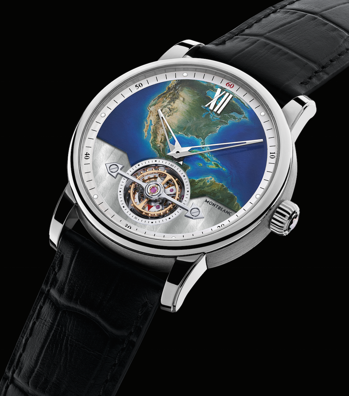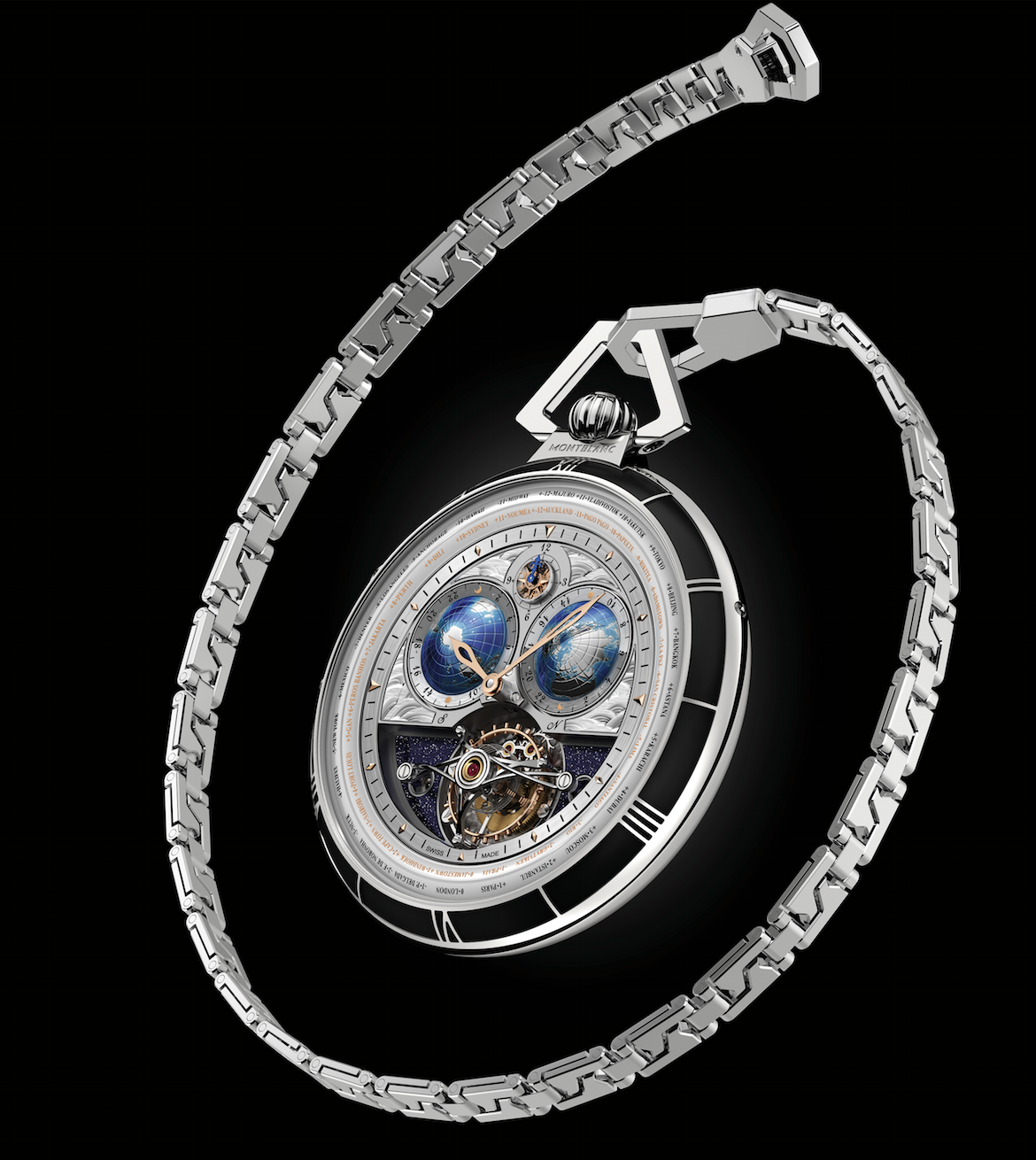 –Calibre MB LL100.1 TwinFly Chronograph 110 Years Edition. Orbis Terrarum: 43 mm de acero inoxidable, dos niveles de discos, uno para situar las ciudades del Universal Time y otro más para exhibir el mapa. Además se ofrece el mismo movimiento en un reloj de bolsillo. Limitado a 110 piezas en 53 mm de diámetro.