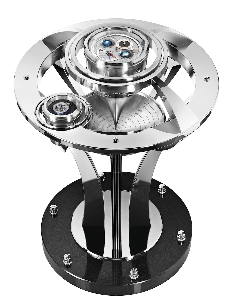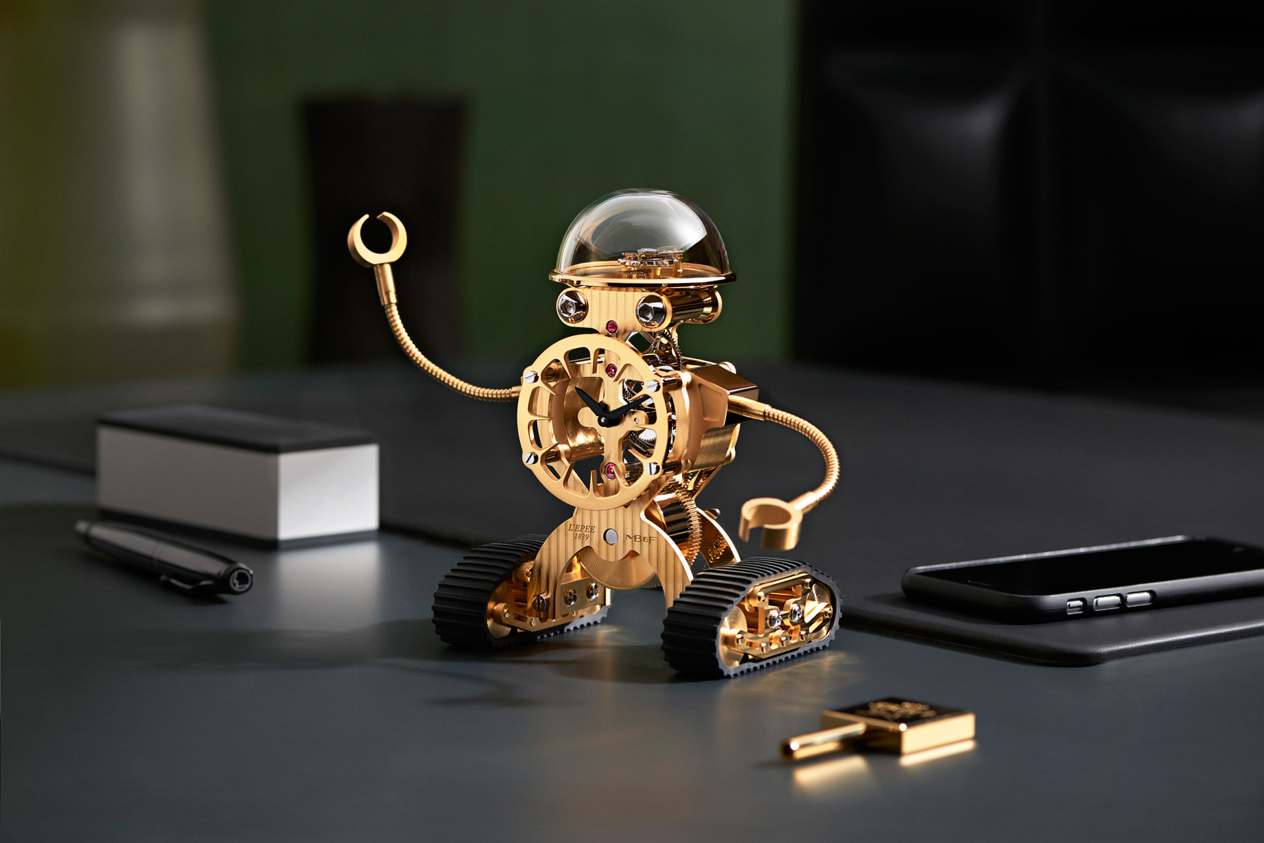 Sherman: “el hermano de Melchior”, un reloj de mesa en forma de robot hecho en colaboración con L´Epee: 8 días de reserva de marcha, horas y minutos. El órgano regulador se sitúa en el cráneo.