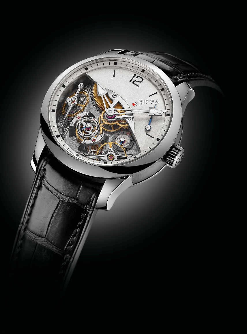 Dos osciladores a 30 grados, se encuentran en una nueva arquitectura, edición especial a 33 piezas de oro blanco. El órgano regulador está conectado a un diferencial esférico acoplado a dos muelles espirales para garantizar la constancia del mismo: “diferencial constante”. Carátula en oro blanco, índices grabados y recubiertos con esmalte gran fuego, los segundos se presentan una pequeña esfera en punto de las 4 horas. Caja de 43,5 mm de diámetro.