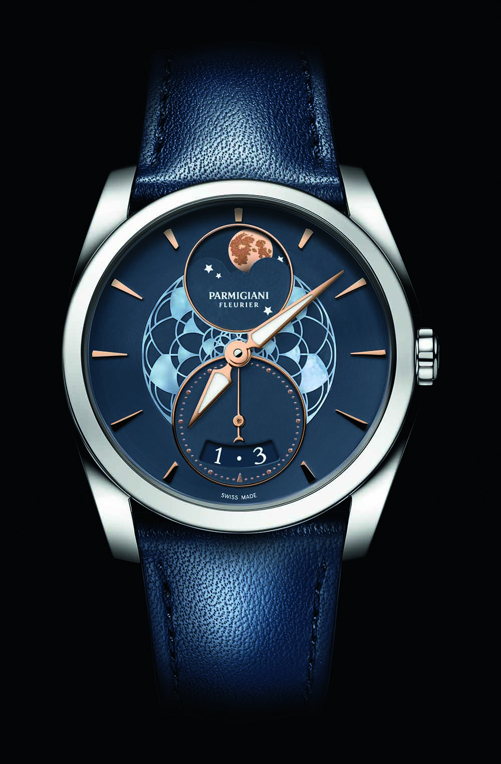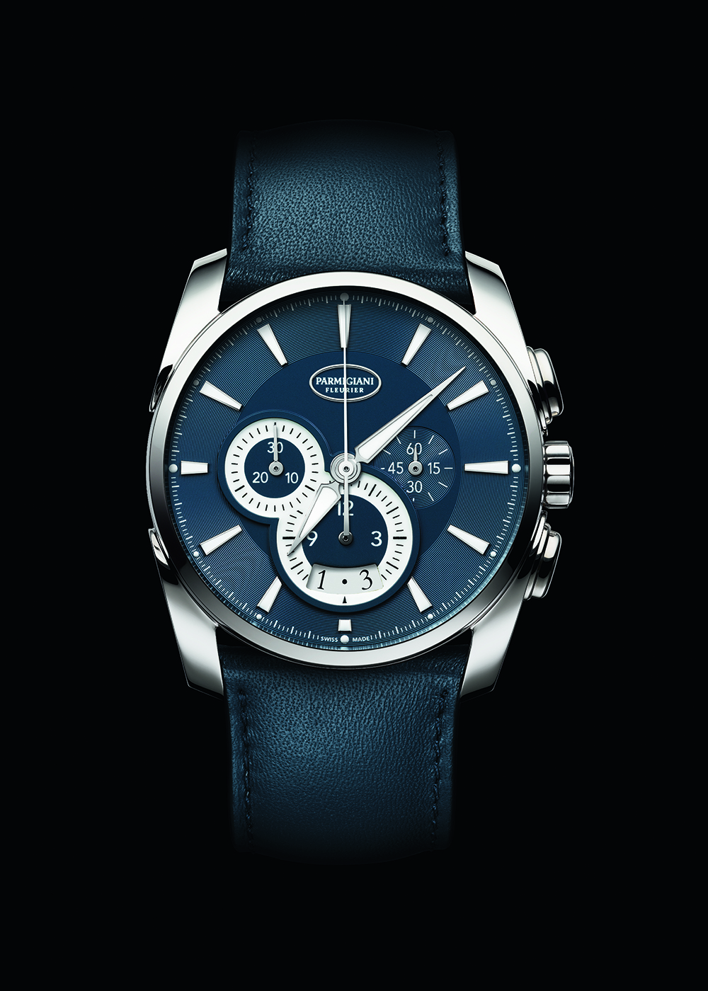Nuevo movimiento de cronógrafo rattrapante integrado y con gran fechador: calibre manual hecho completamente en oro. Es el único cronógrafo integrado con split seconds a 5 Hz (36,000 a/h). Utiliza dos ruedas de pilares: una para el crono y otra para el el rattrapante. Los puentes presentan una decoración de Alta Relojería, carátula esmaltada (grand feu) azul u opalina, para la construcción de 25 piezas en caja de oro blanco y el mismo número construidas en oro rosa de 18 quilates. El movimiento, desarrollado en la Manufactura de Parmigiani Vaucher, lleva grabada la firma de Michel Parmigiani.