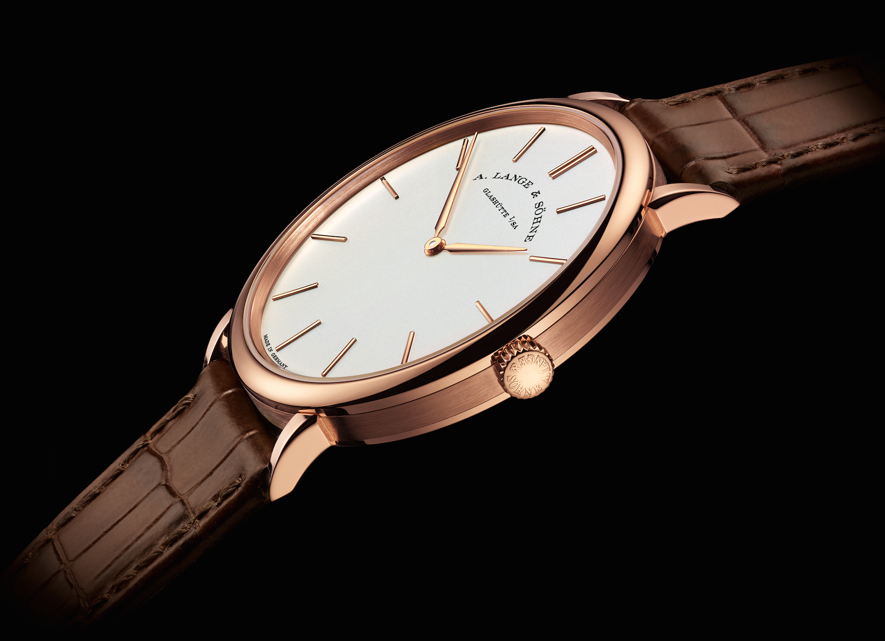 Recibe una fase de Luna, en combinación de dos características distintivas de la Casa: gran fecha y fase de Luna. Un movimiento nuevo basado en el anterior Saxonia, cuenta 72 horas de autonomía. 28,500 euros en oro rosa o blanco.