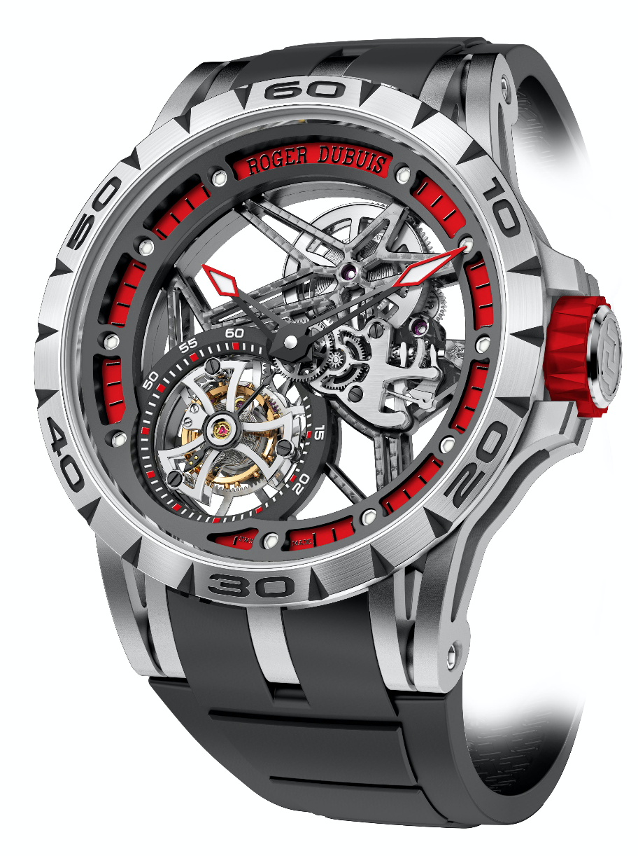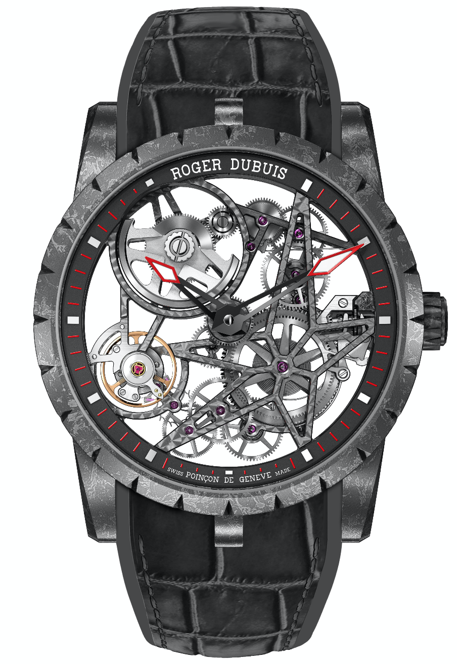 El año pasado descubrimos Astral Skeleton, siendo Roger Dubuis un pionero en movimientos esqueletados. Producto del desarrollo y la innovación en materiales, se presenta Excalibur Carbon, con caja de carbón y movimiento automático con micro-rotor de tungsteno.