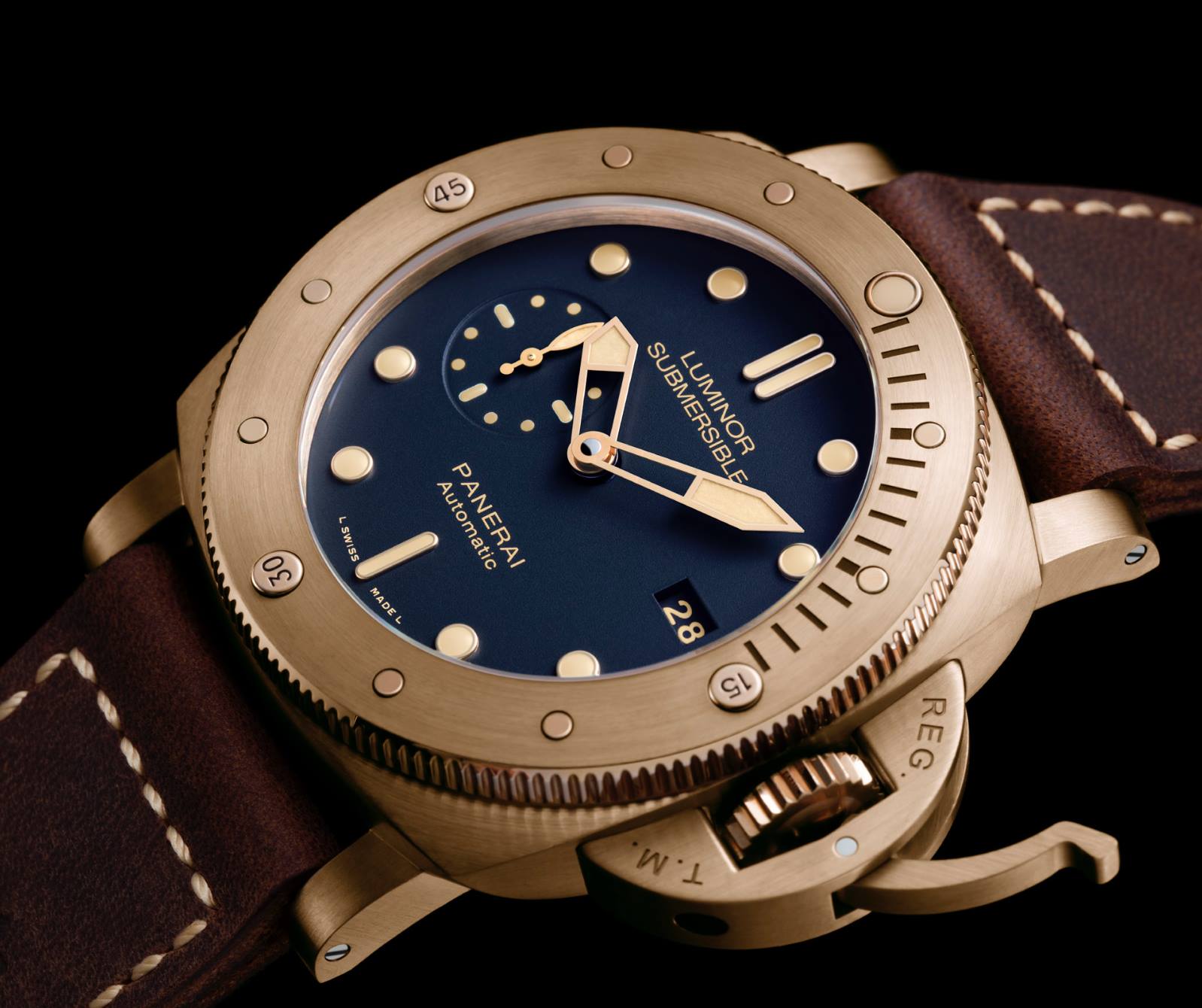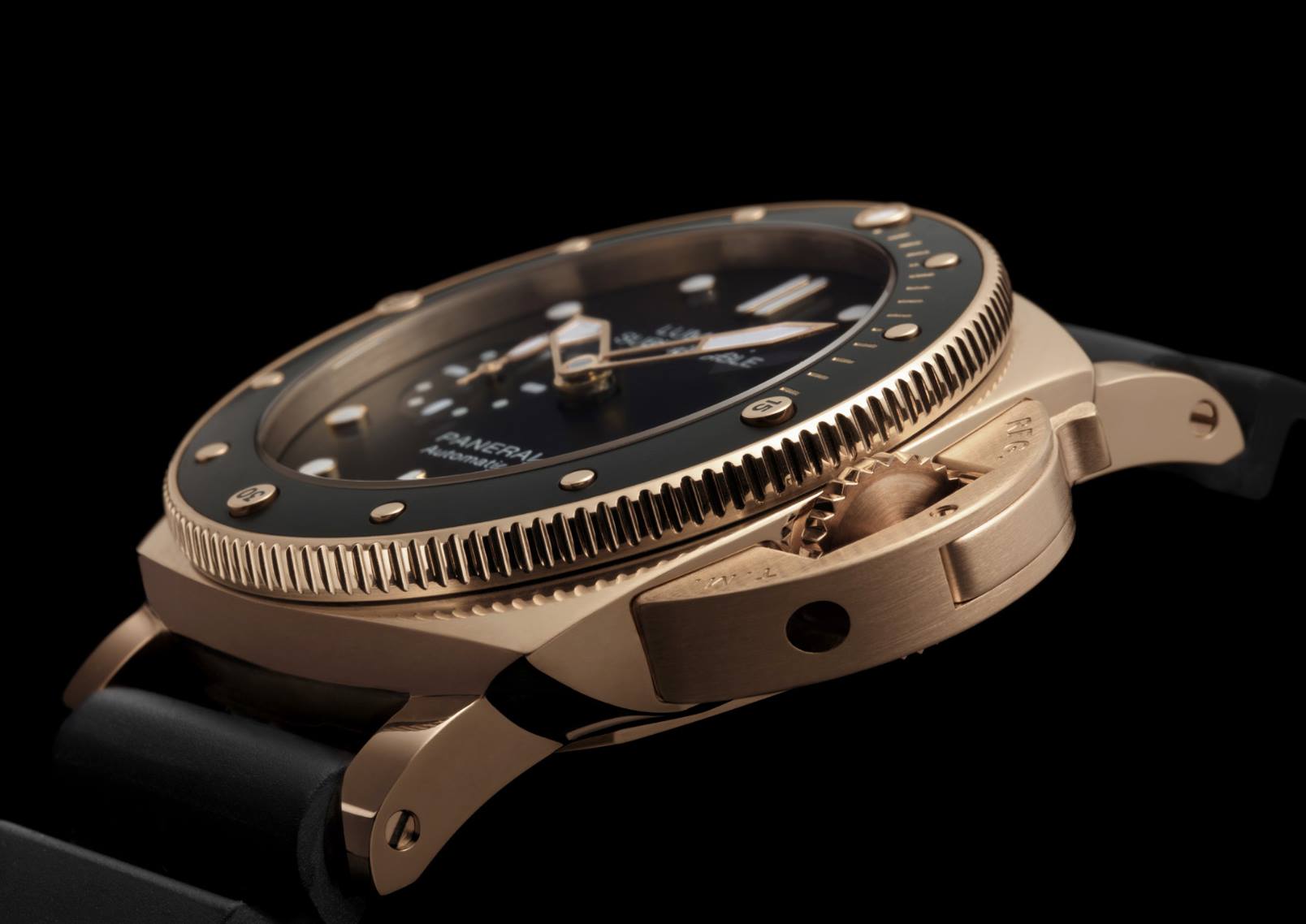 La tradición de los relojes para inmersión continúa, y en esta ocasión se adicionan referencias con nuevos materiales y con una actualización que da gusto mirar en Panerai. La caja se nutre de titanio y el acero inoxidable AISI 316L; preciosos como el oro rojo; fascinantes y evocadores como el bronce; o innovadores como el BMG TechTM, un vidrio metálico que destaca por su resistencia a los golpes externos y a la corrosión.